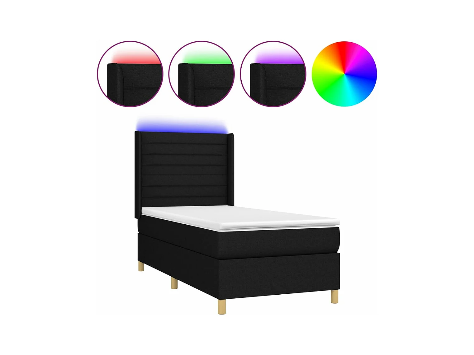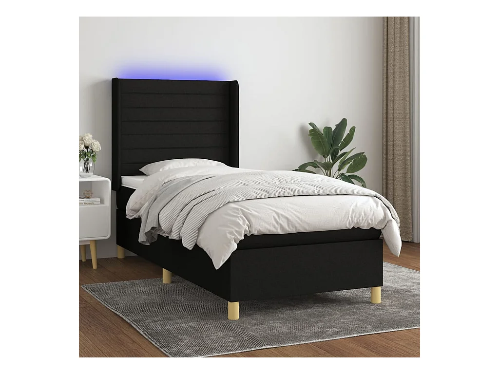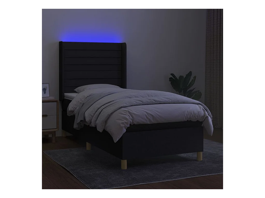 Sommier à lattes de lit matelas et LED Noir 90x200 Tissu