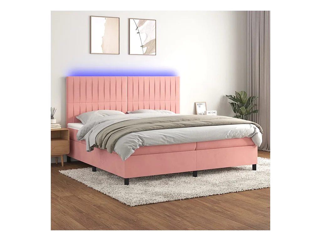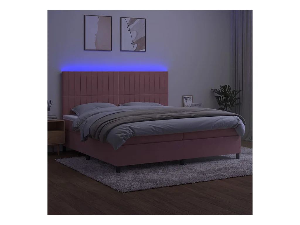 Sommier à lattes de lit matelas et LED Rose 200x200 Velours