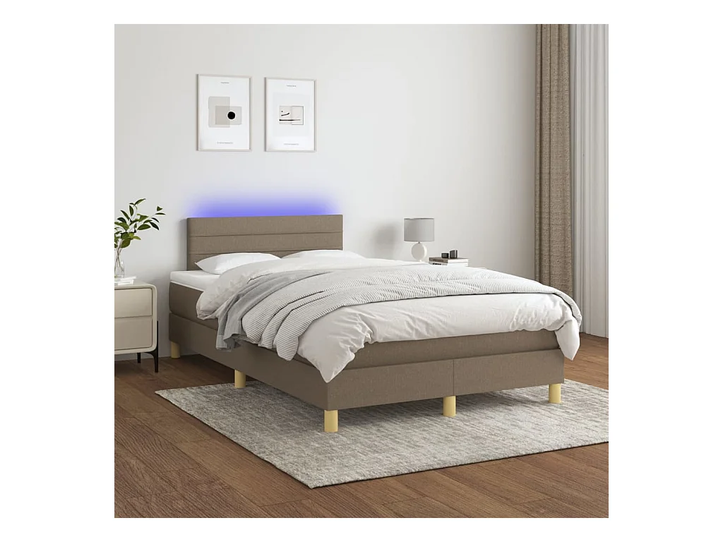 Sommier à lattes de lit matelas et LED taupe 120x190 tissu