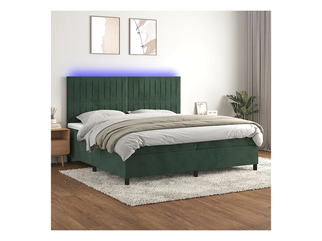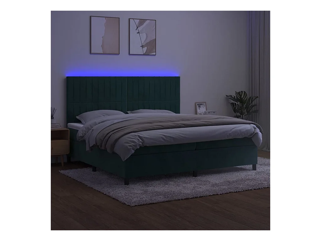 Sommier à lattes de lit matelas et LED Vert foncé 200x200