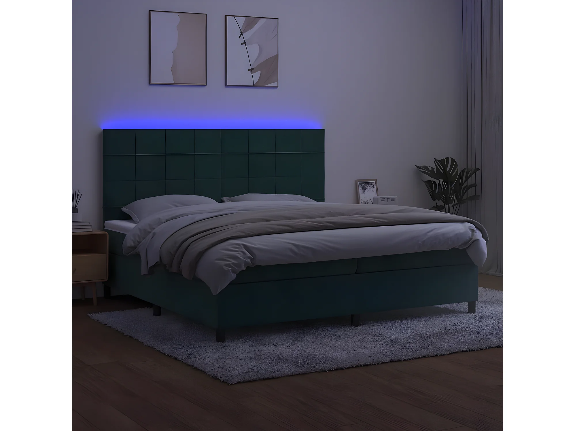 Sommier à lattes de lit matelas et LED Vert foncé 200x200