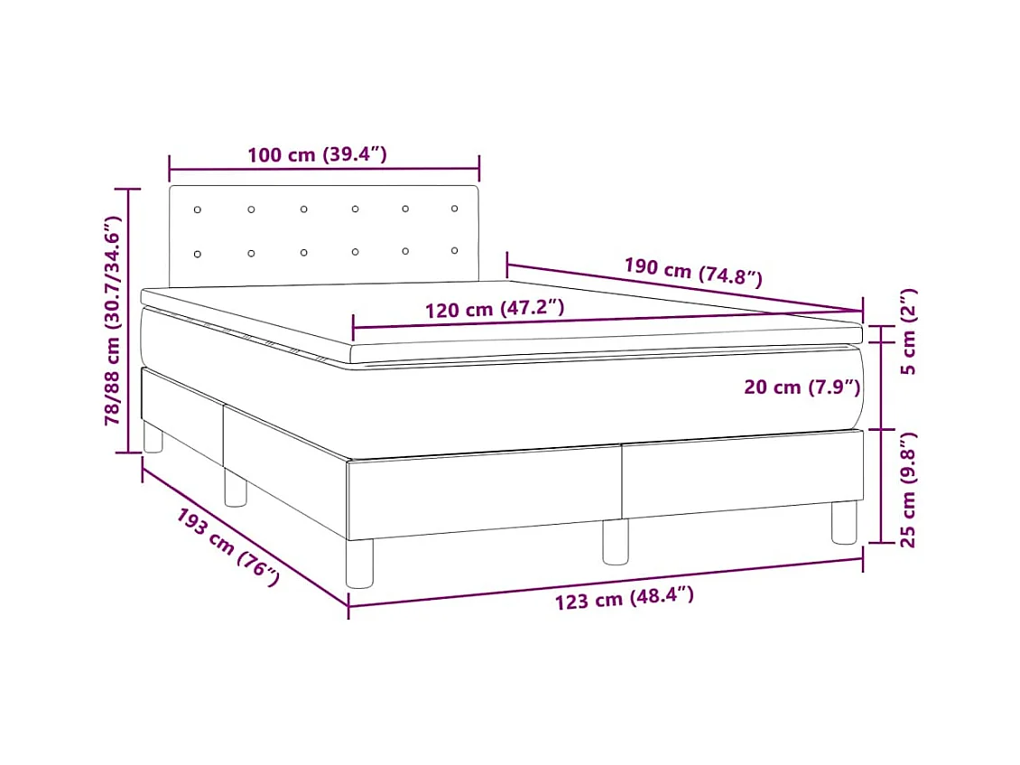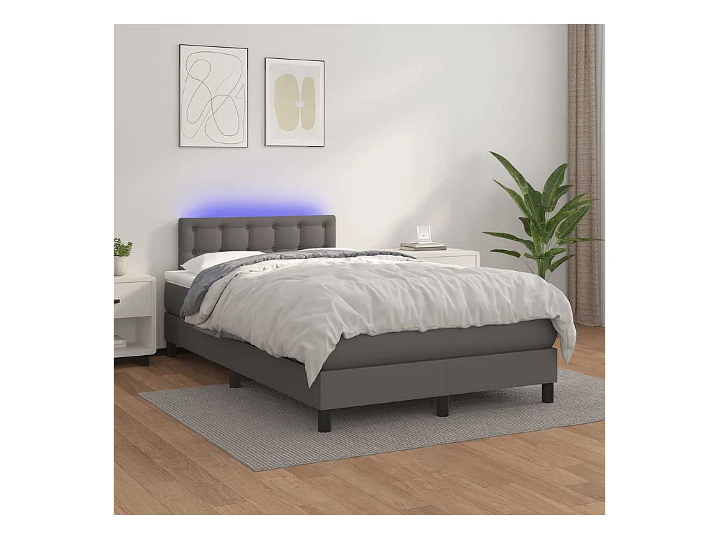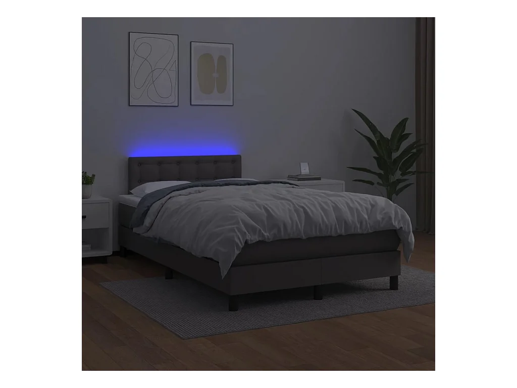 Sommier à lattes de lit matelas LED gris 120x190 cm similicuir