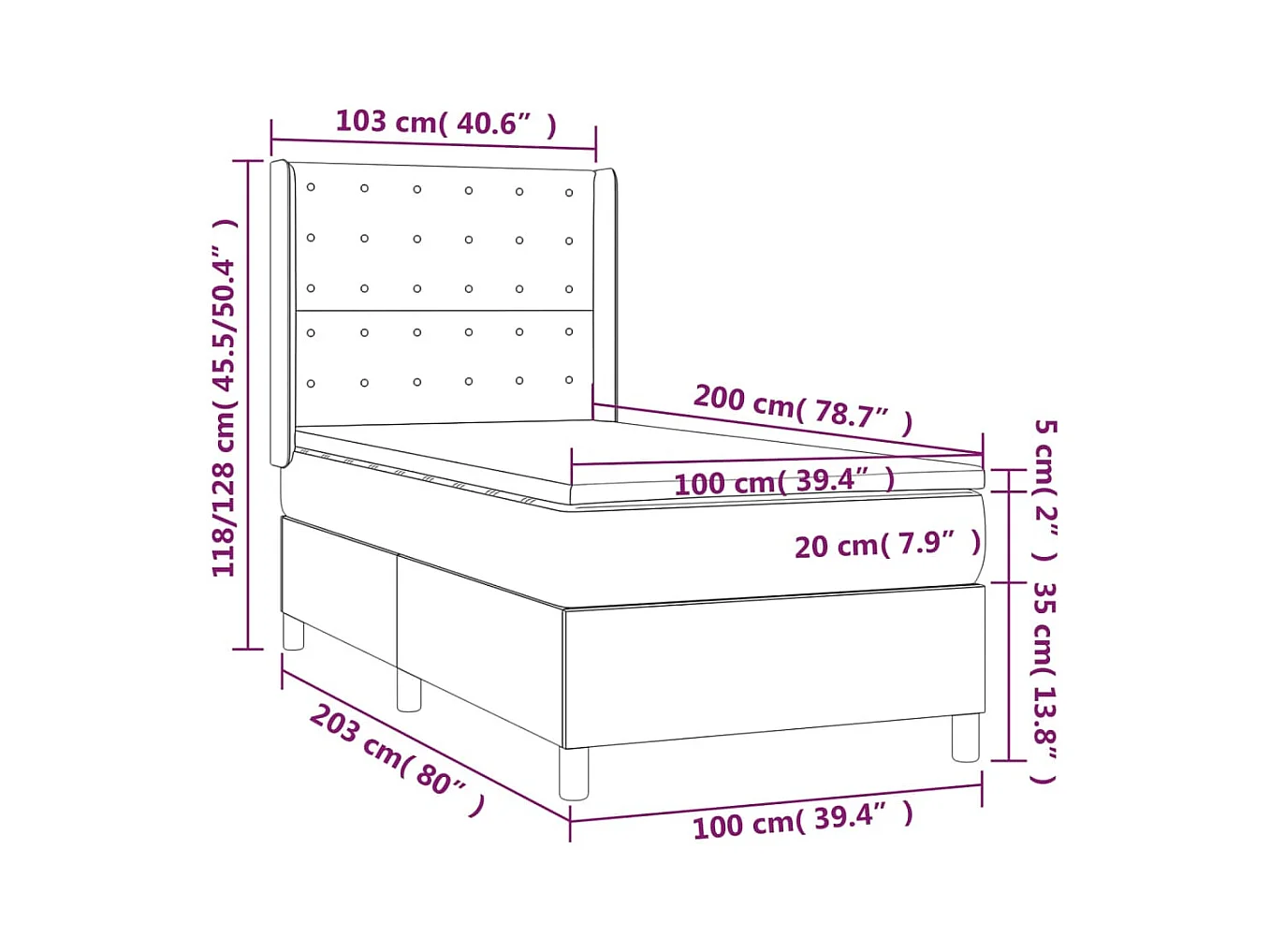 Sommier à lattes de lit matelas LED Noir 100x200 Similicuir