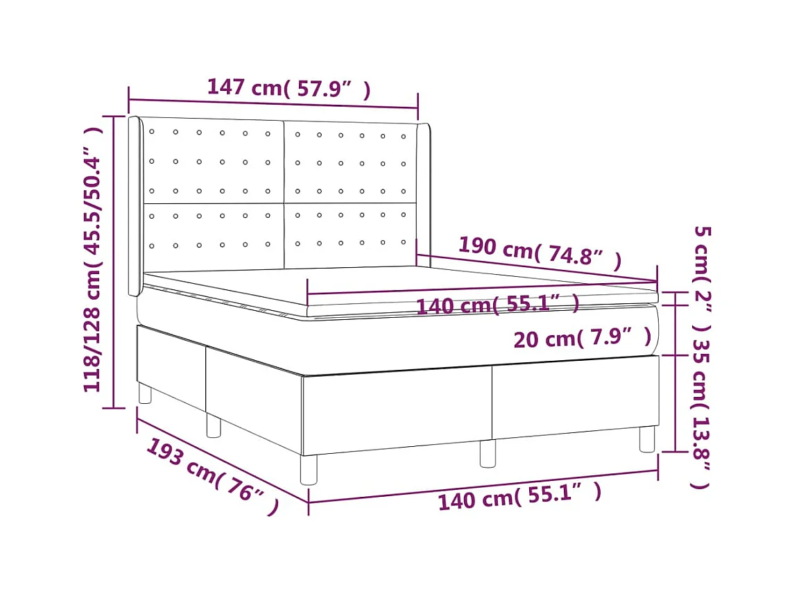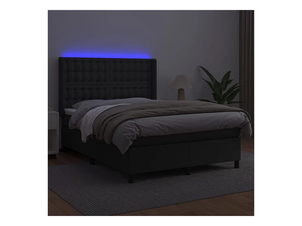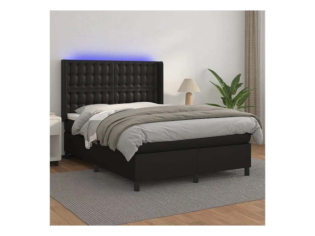 Sommier à lattes de lit matelas LED Noir 140x190 Similicuir