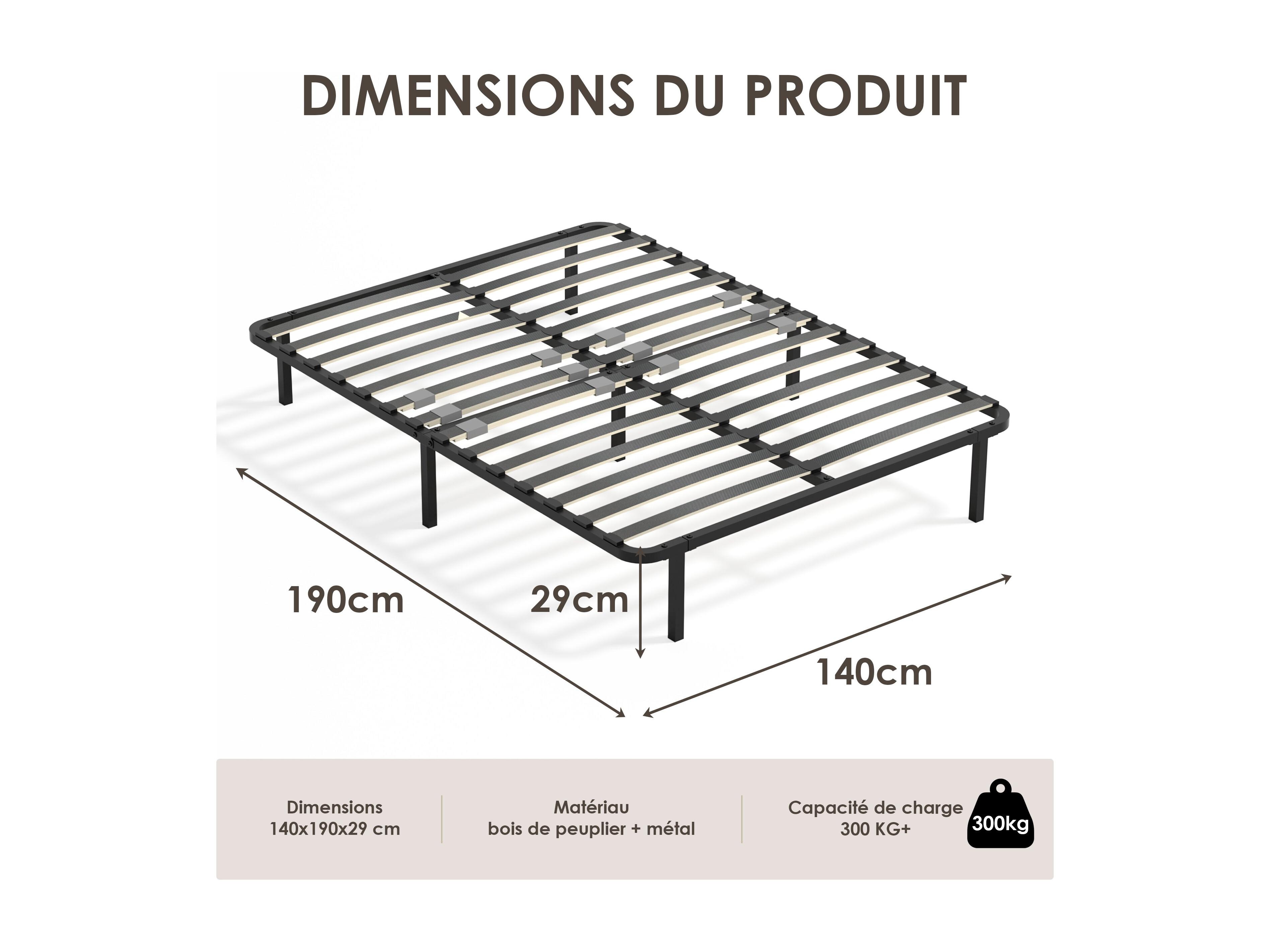 Sommier cadre à lattes 140x190 cm, 2x14 rangs, incl. 7 repose-pieds