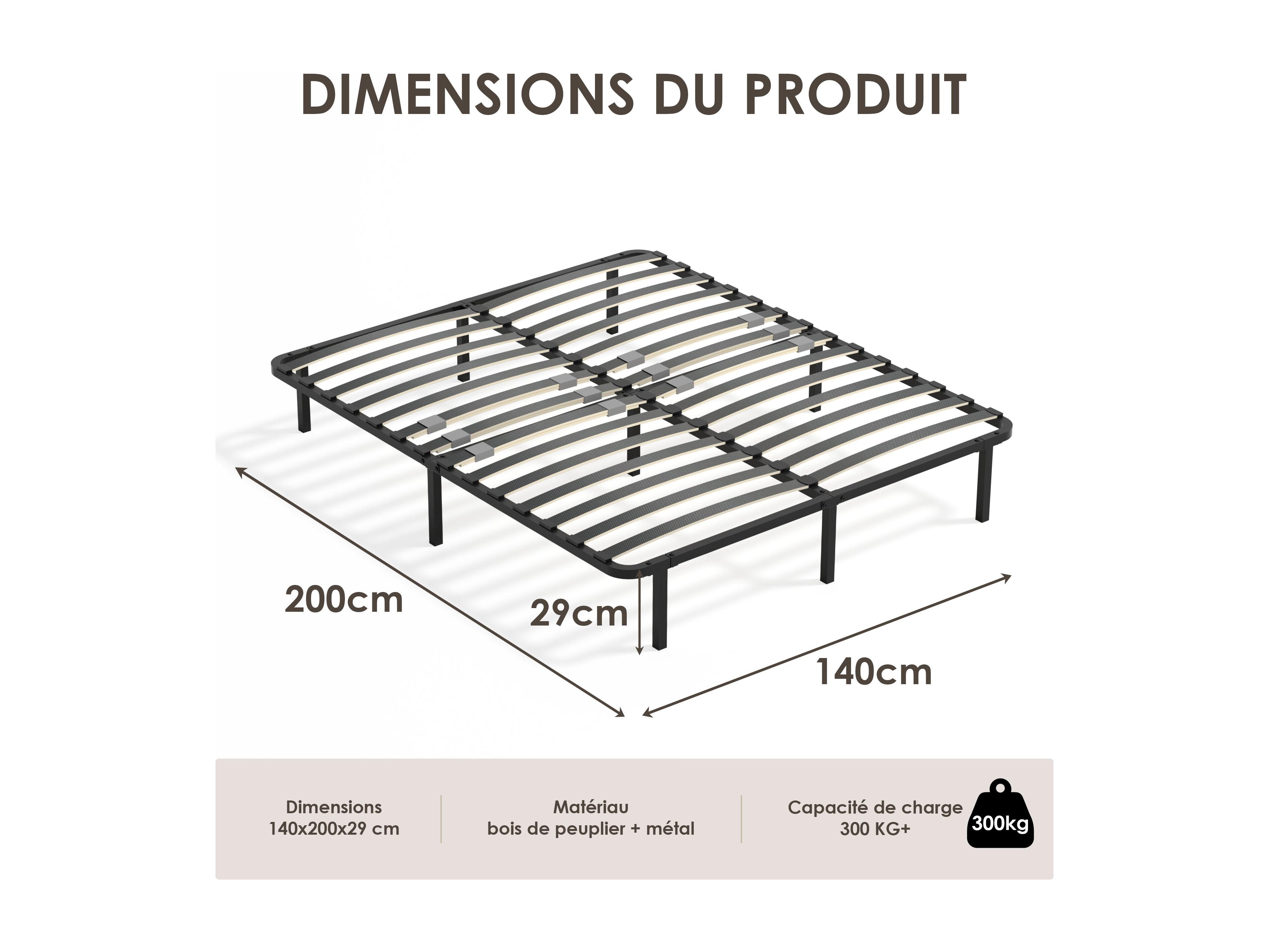 Sommier cadre à lattes 140x200 cm, 2x14 rangs, incl. 7 repose-pieds