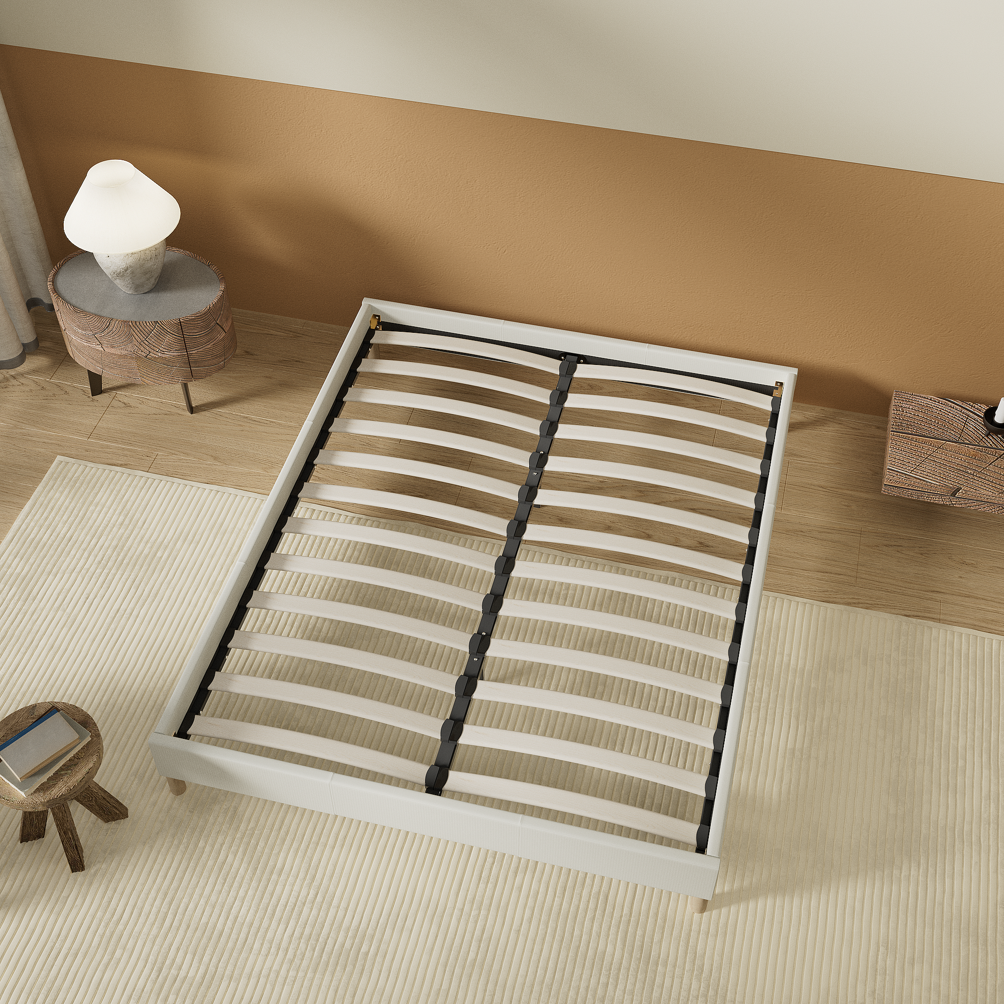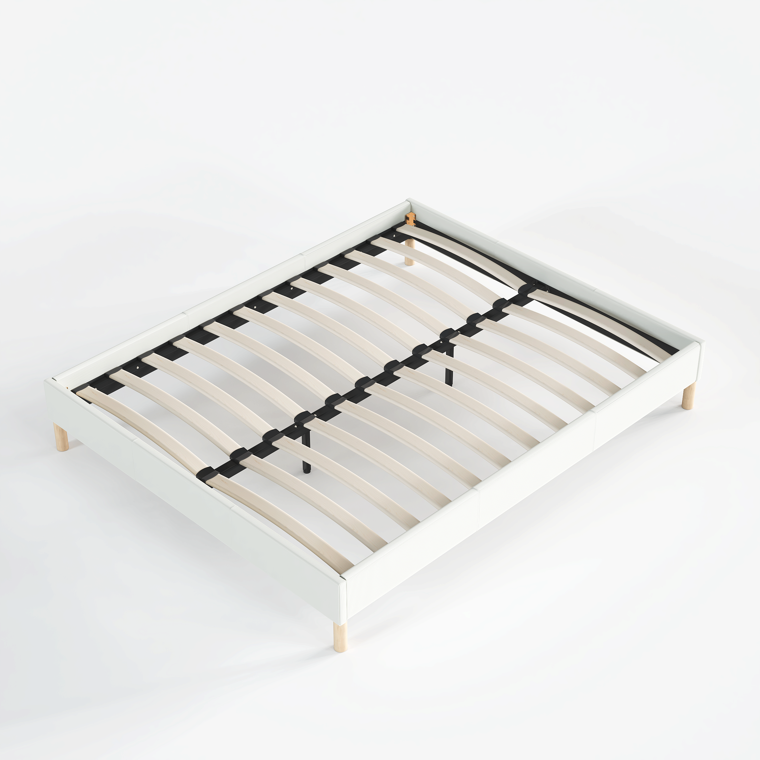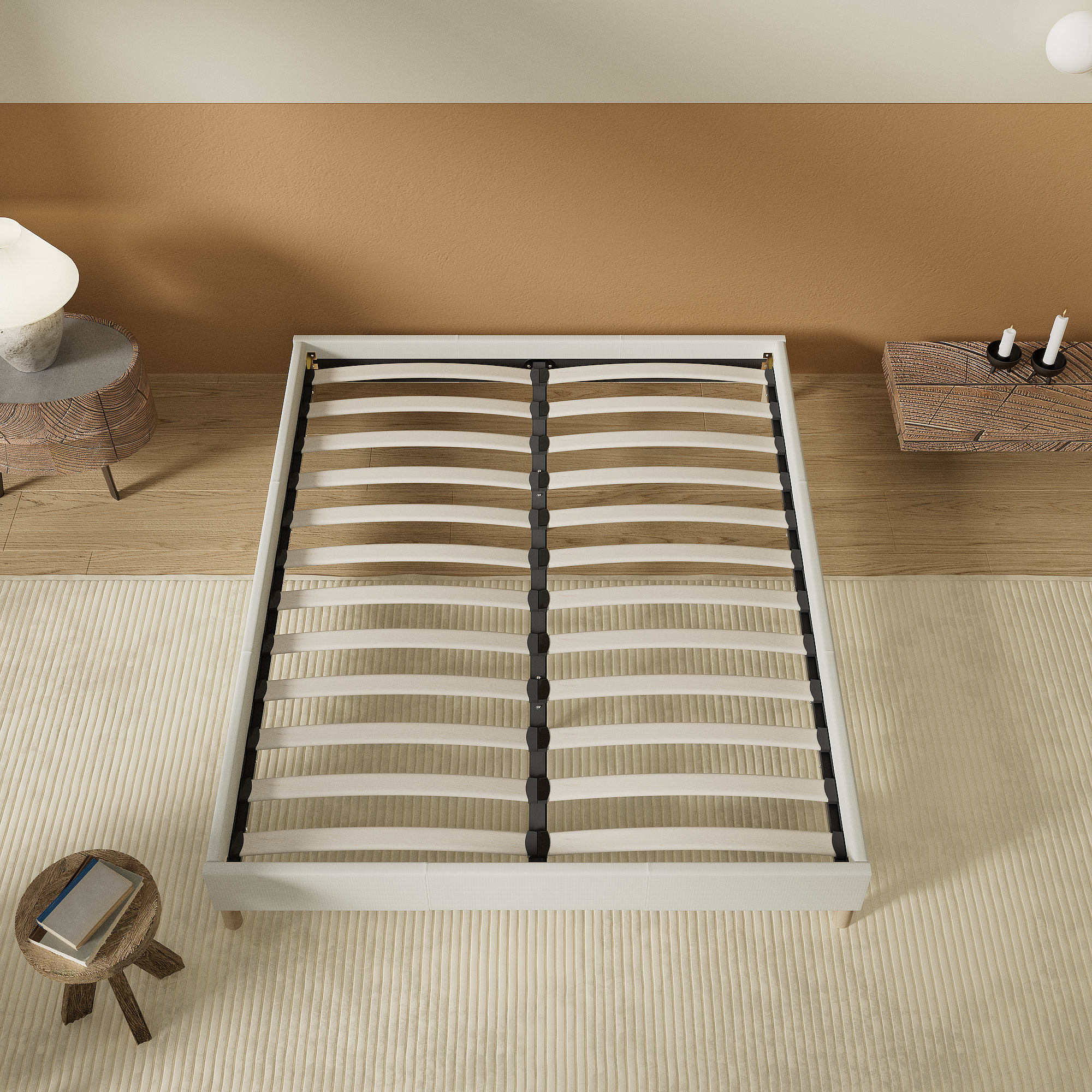 Sommier 140x200 cm, Revêtement en tissu Blanc Crème, Pieds en bois