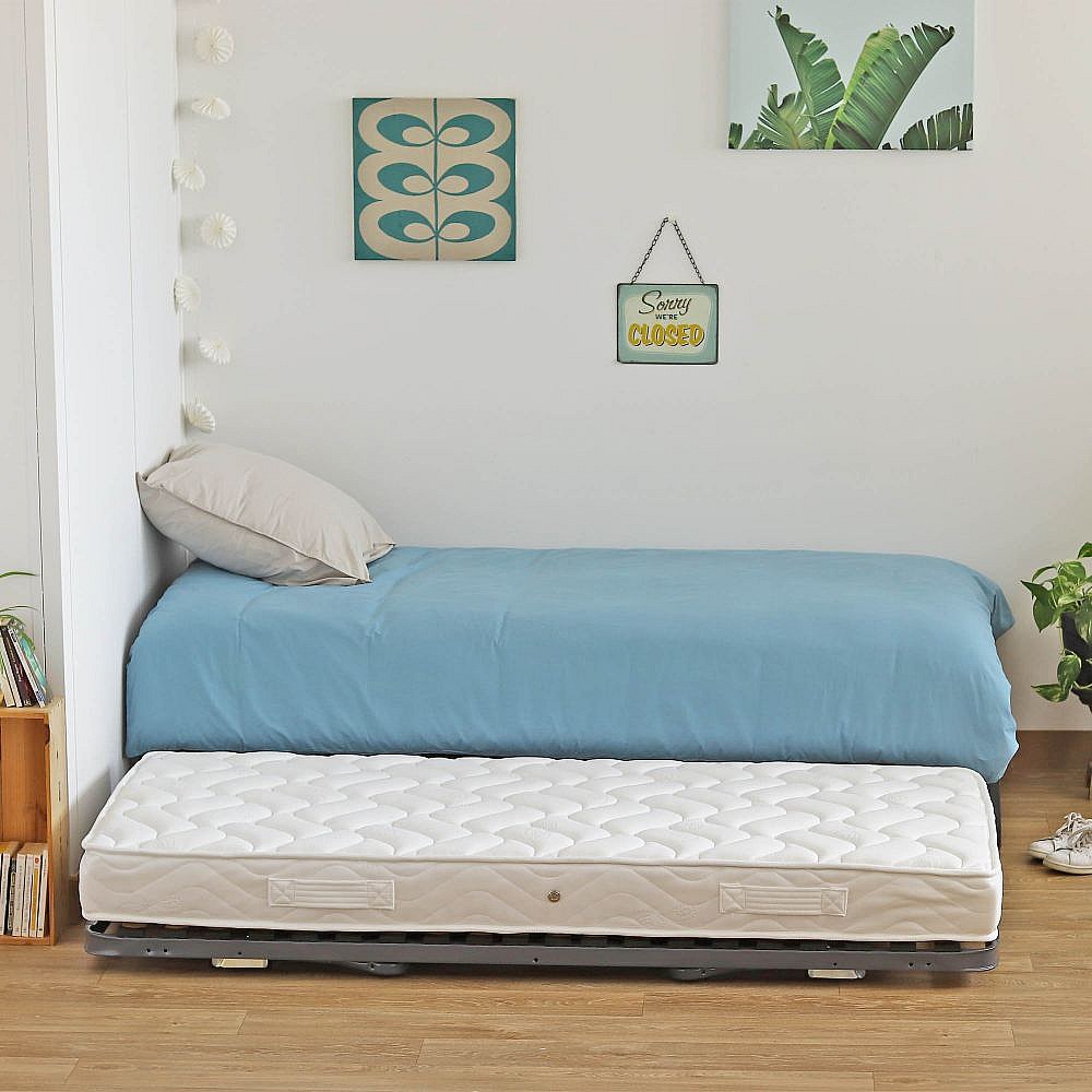 Sommier gigogne + matelas Montana - 90x190 - Mousse - 20 lattes bois - Gain de place