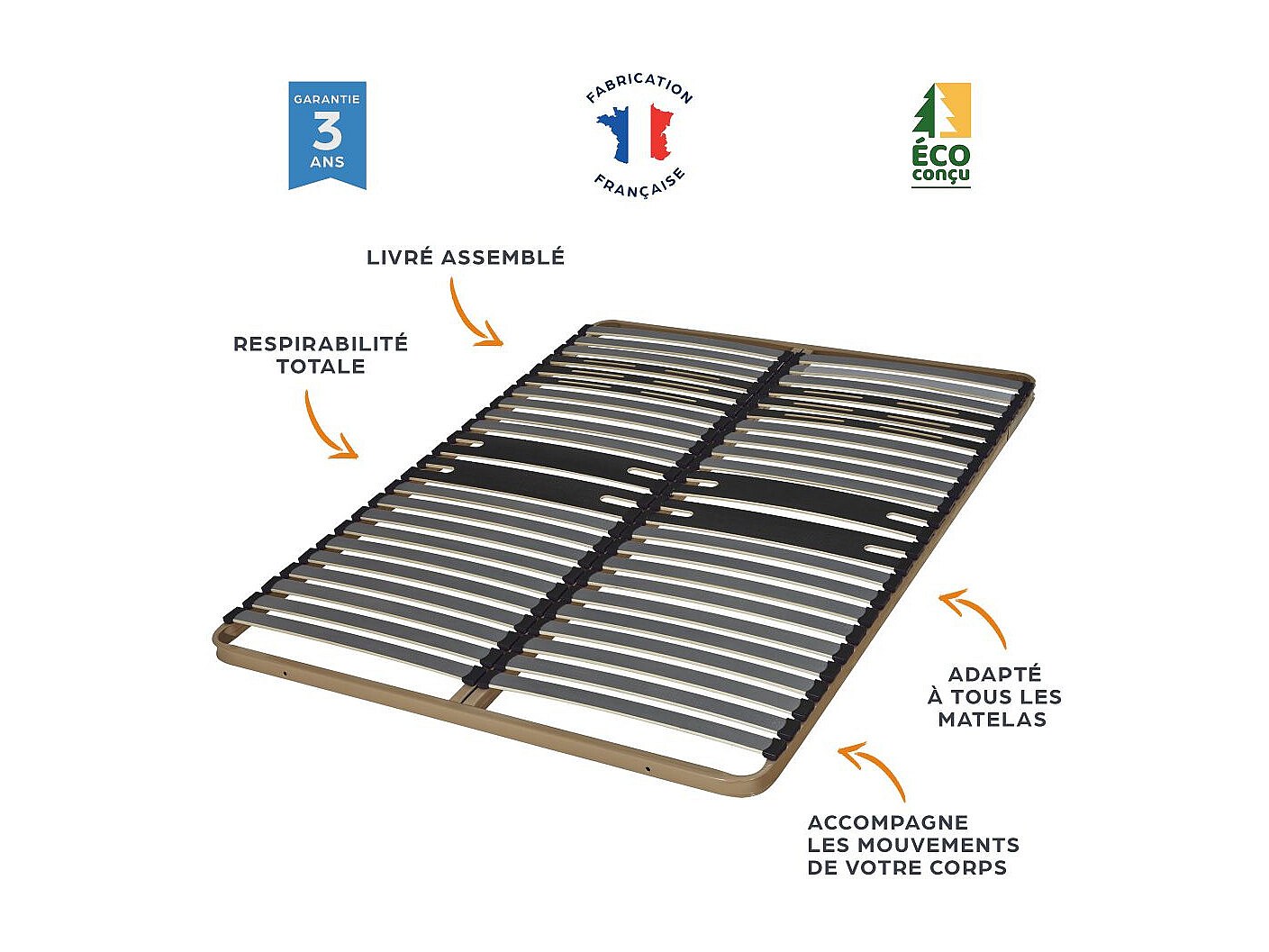 Sommier à lattes 140x200 C322 - 46 lattes bois - Fabrication française