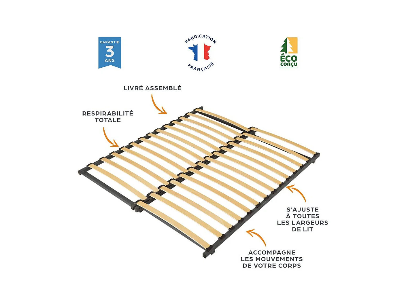 Sommier à lattes de 88 à 162x195 Extensible - 27 lattes bois - Fabrication française