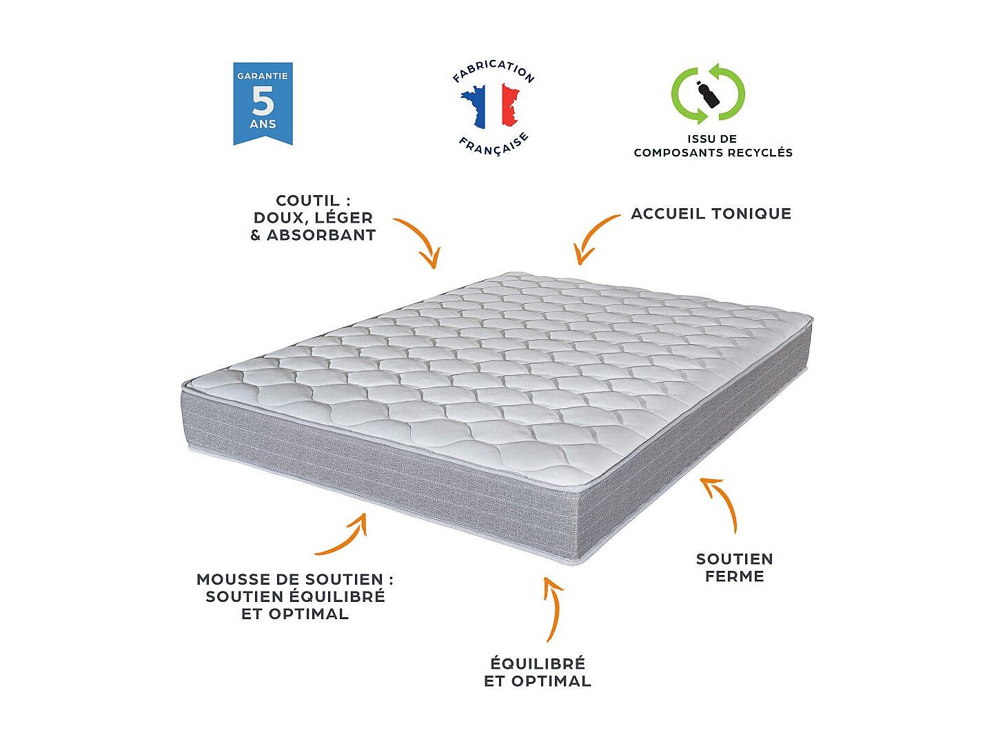 Sommier démontable surélevé KIT27 + Matelas Madere - 40 lattes bois - Gain de place