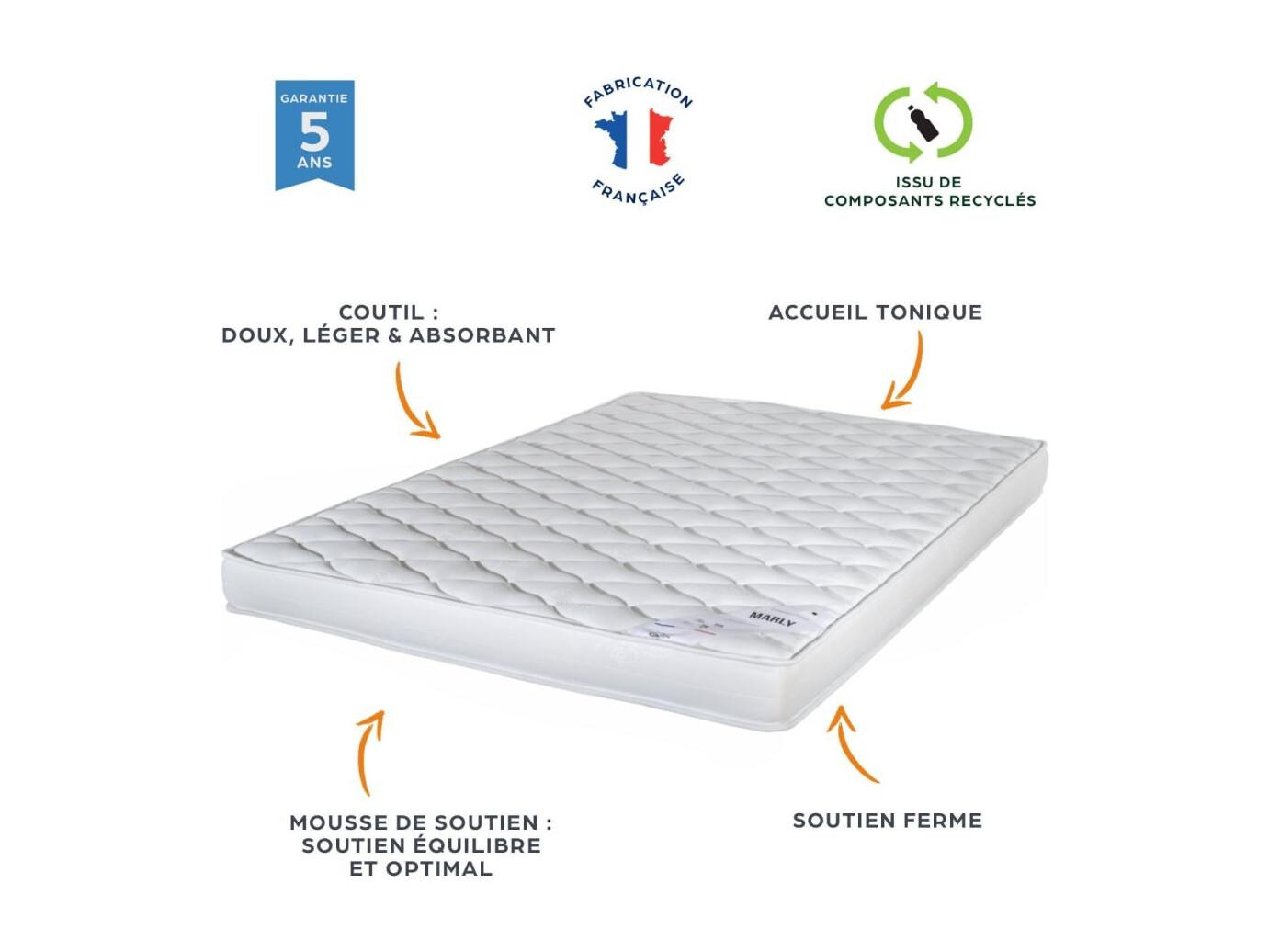 Sommier démontable surélevé KIT27 + Matelas Marly - 40 lattes bois - Gain de place