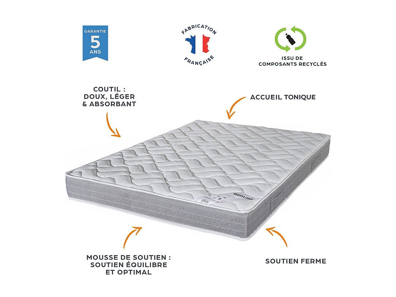 Sommier démontable surélevé KIT27 + Matelas Maryland - 40 lattes bois - Gain de place