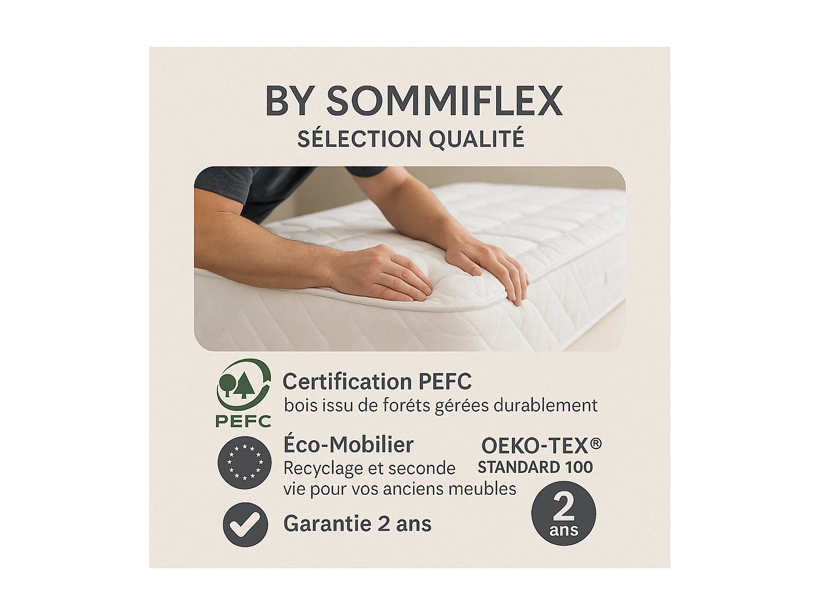 Sommier tapissier 180x200cm (90x200x2) Fabrication Française + Pieds offerts