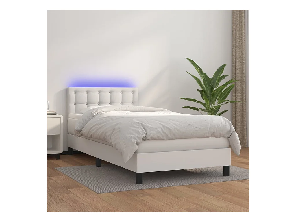 Sommier à lattes de lit avec matelas et LED Blanc 90x190cm
