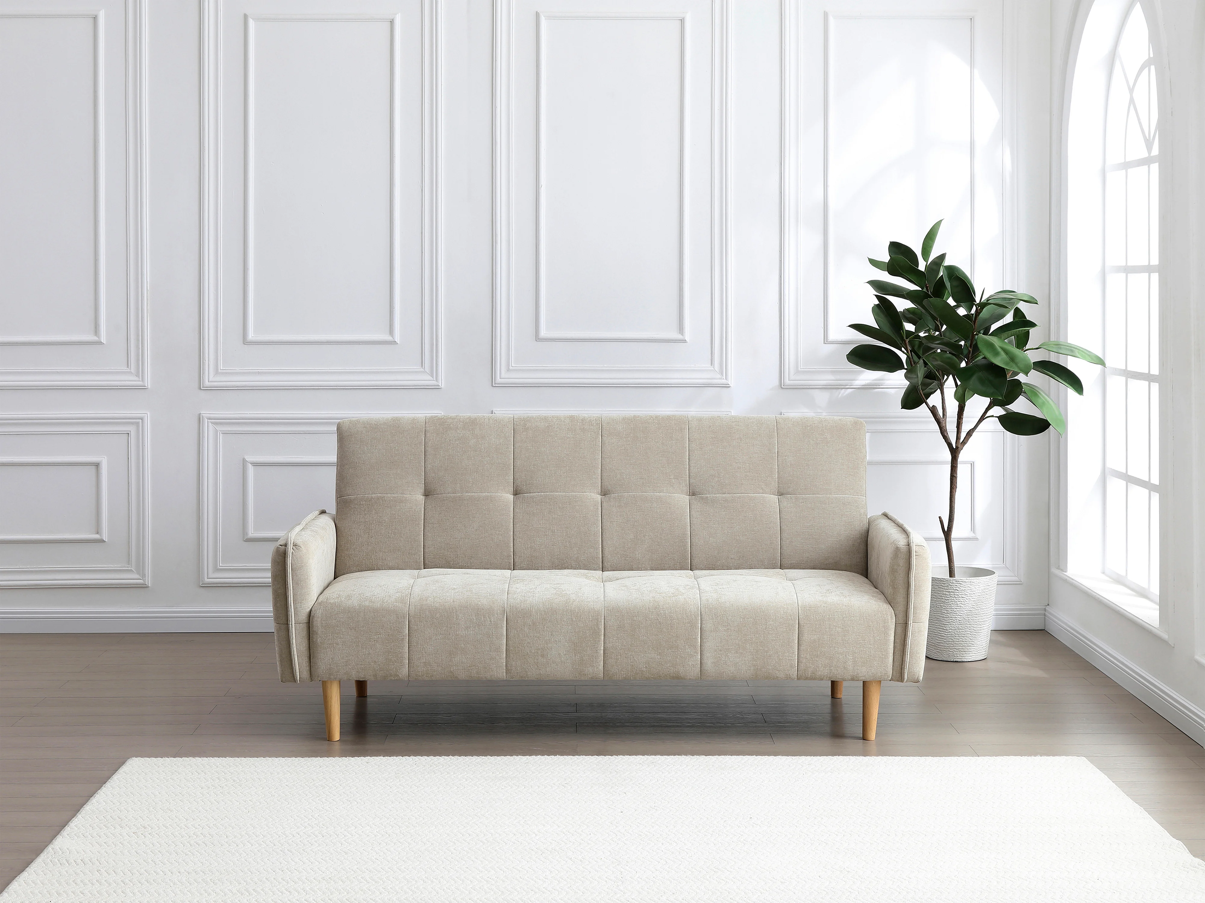 Canapé 3 places convertible clic-clac en tissu beige SONIATA