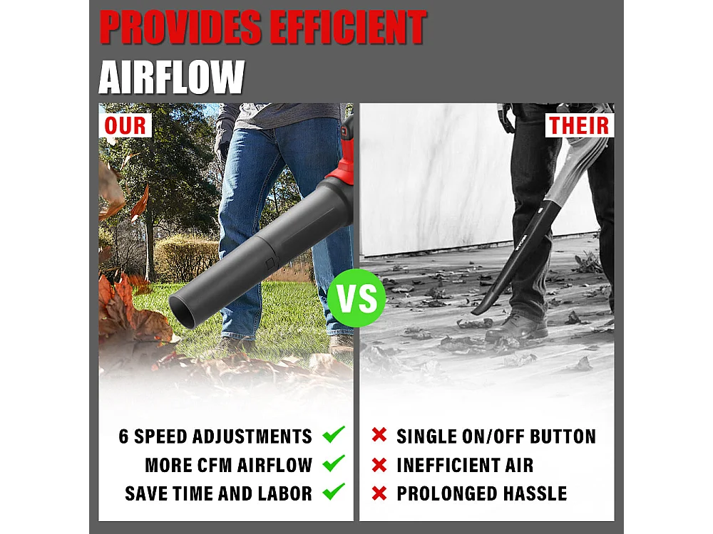 Souffleur de feuilles électrique, 6 modes de vitesse, 450 cfm/130 mph