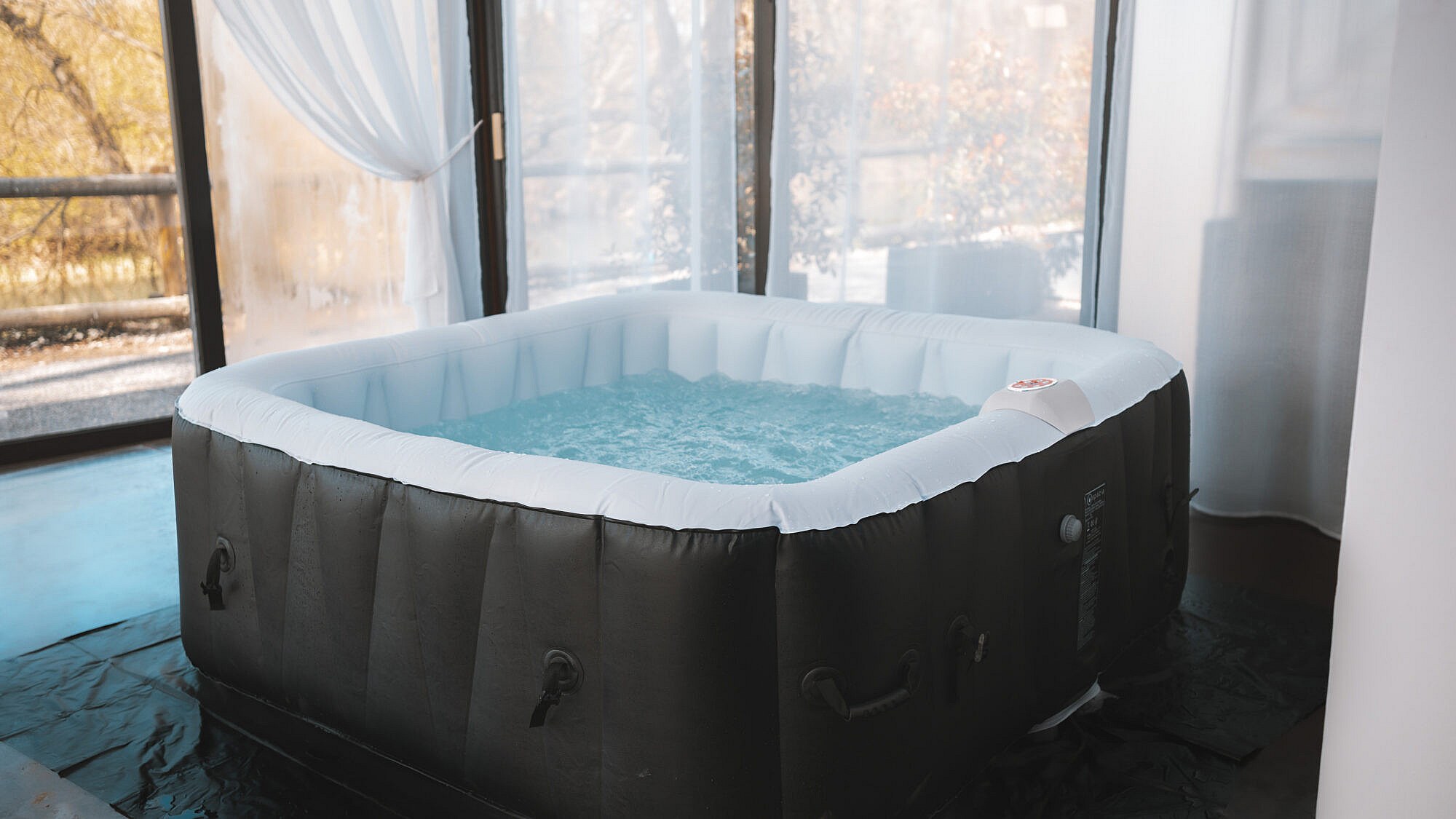 Spa gonflable 4 places carré - Ospazia - Dimensions : 155 x 155 cm - Filtre et bâche inclus