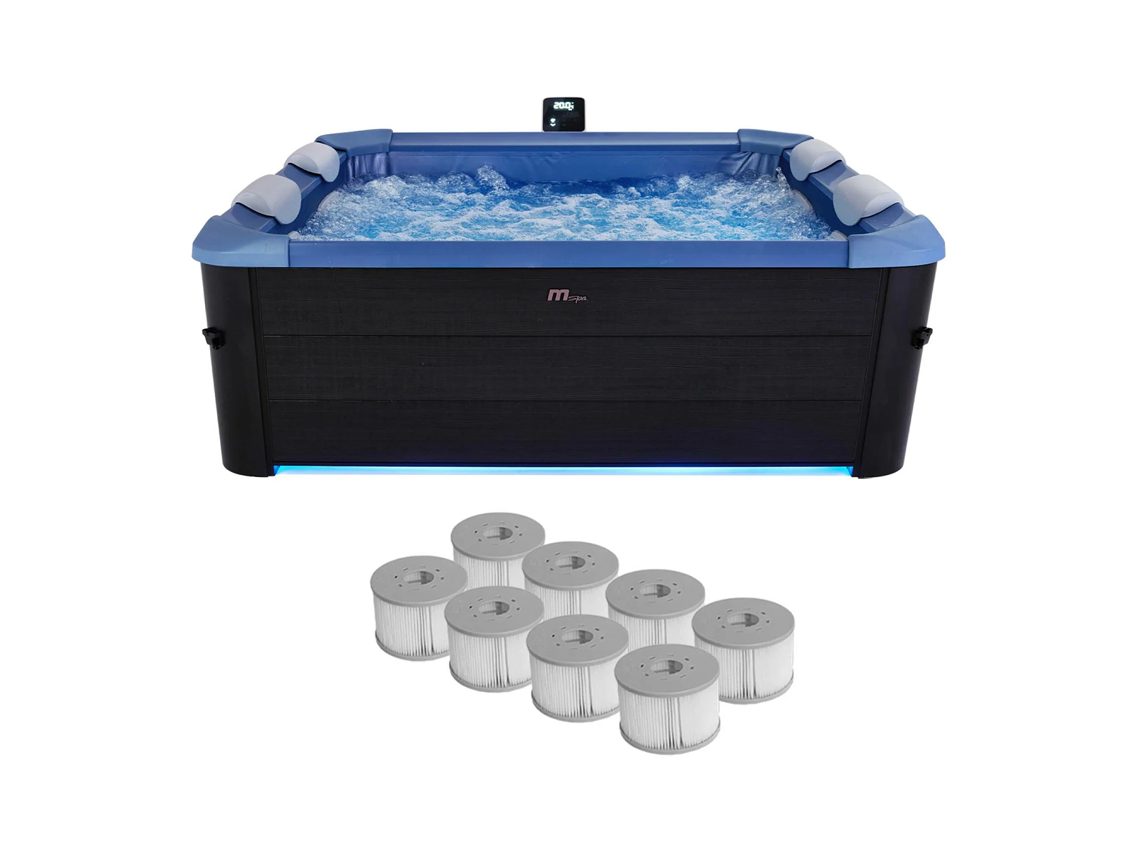 Spa rigide 6 places hydromassages. 4 coussins + 8 filtres + bâche incluse. OSLO SAPPHIRE. L 160 x P 160 x H 65 cm