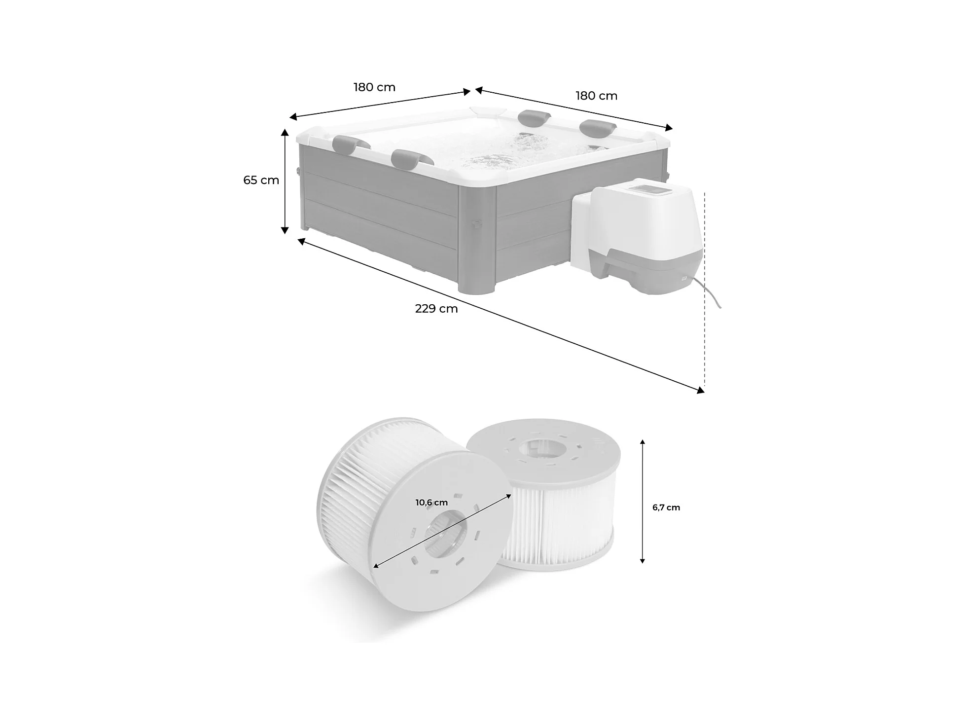 Spa rigide MSPA 6 places 4 coussins hydromassages. 8 filtres + bâche incluse 180 cm x 65 cm