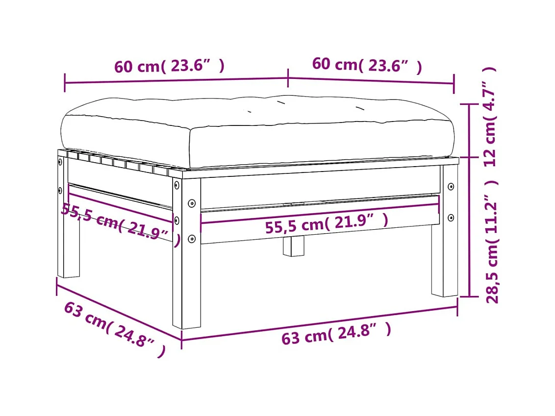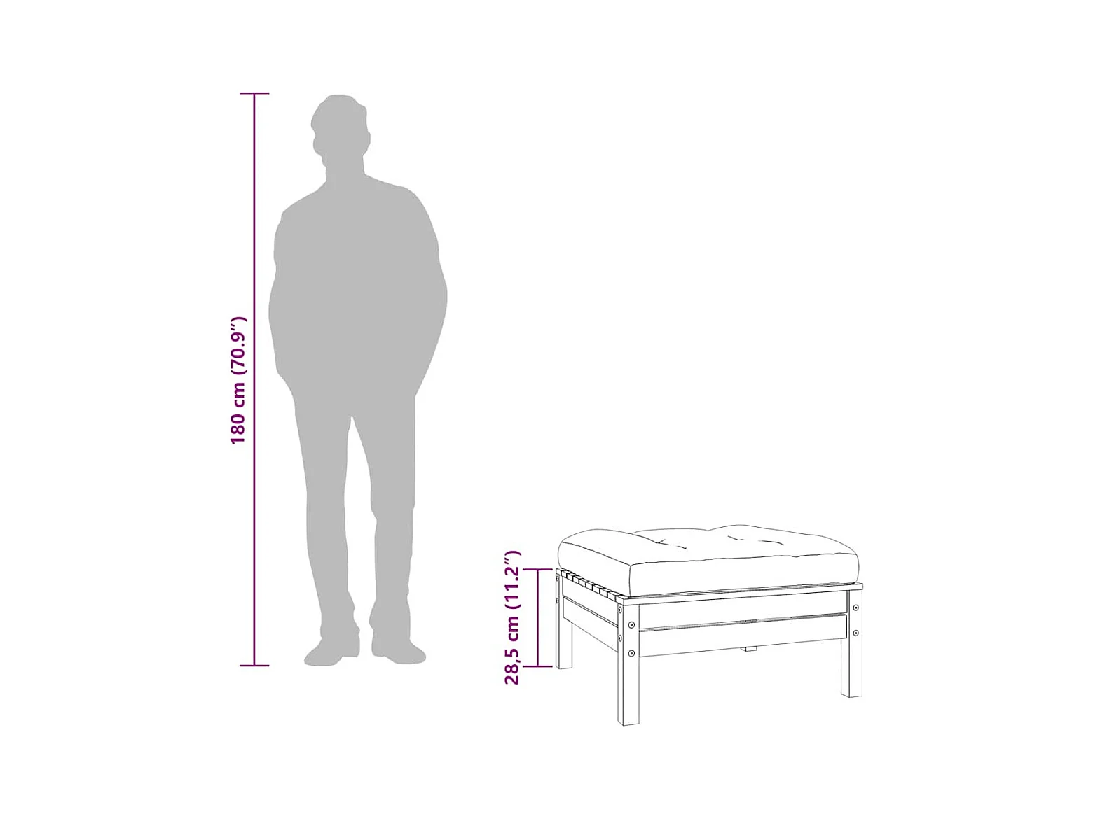 Tibor Repose-pied de jardin avec coussin bois de pin massif