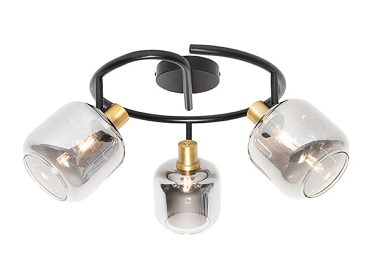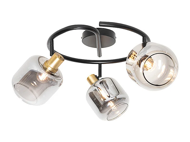Spot de plafond noir avec or et verre fumé 3 lumières - Zuzanna