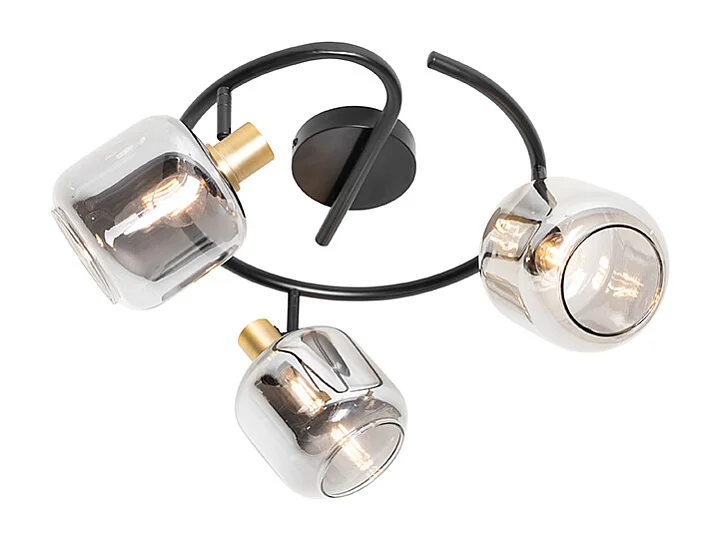 Spot de plafond noir avec verre fumé rond 3 lumières - Zuzanna