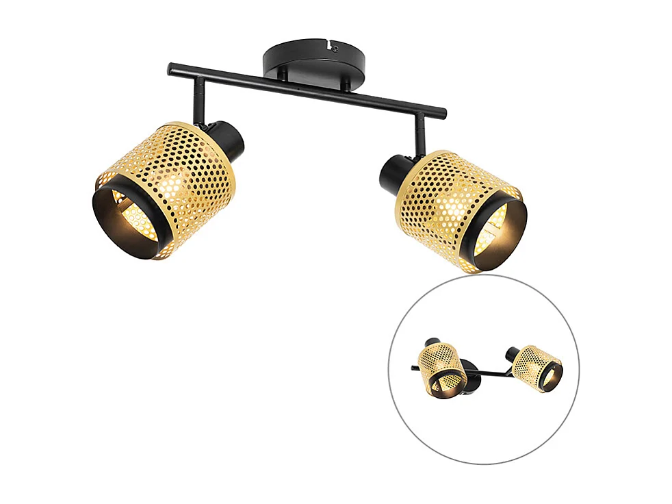Plafonnier minimaliste noir avec or 2 lumières - Kodi