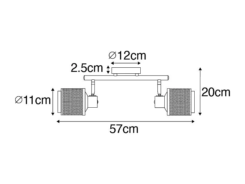 Spot encastré industriel noir avec or 2 lumières - Kayden