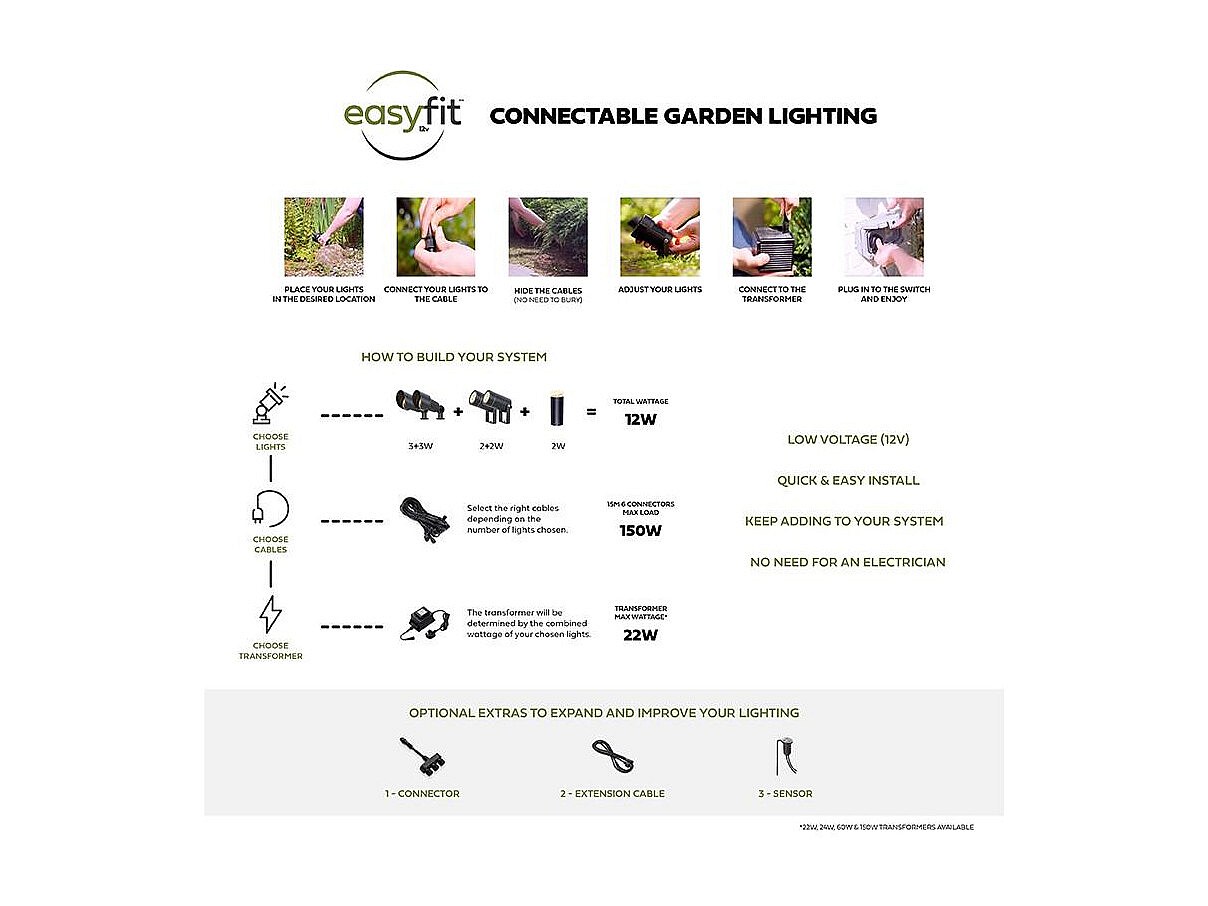 Spot Extérieur LED 3W sur Piquet Fern EasyFit 12V Noir