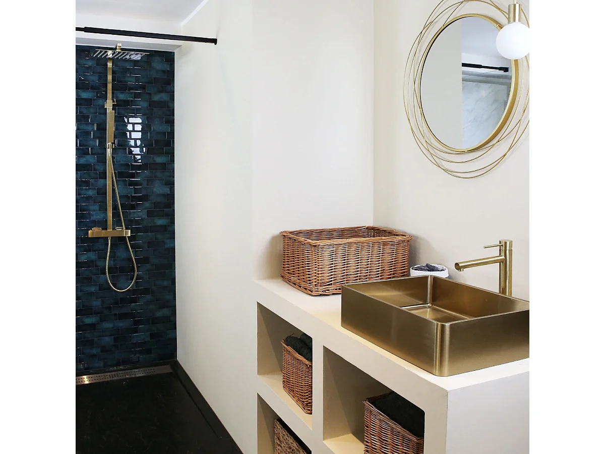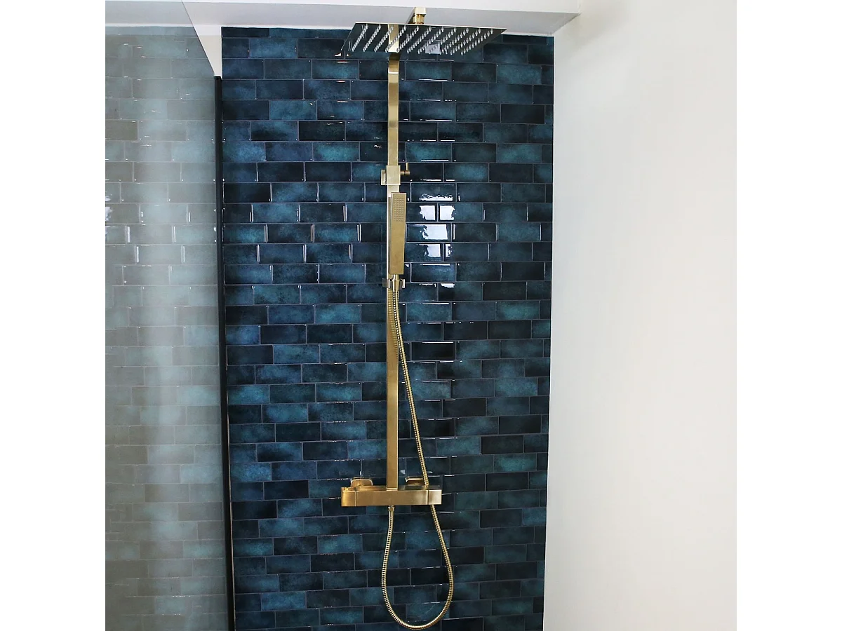 Square II colonne de douche carrée thermostatique or brossé - Essebagno