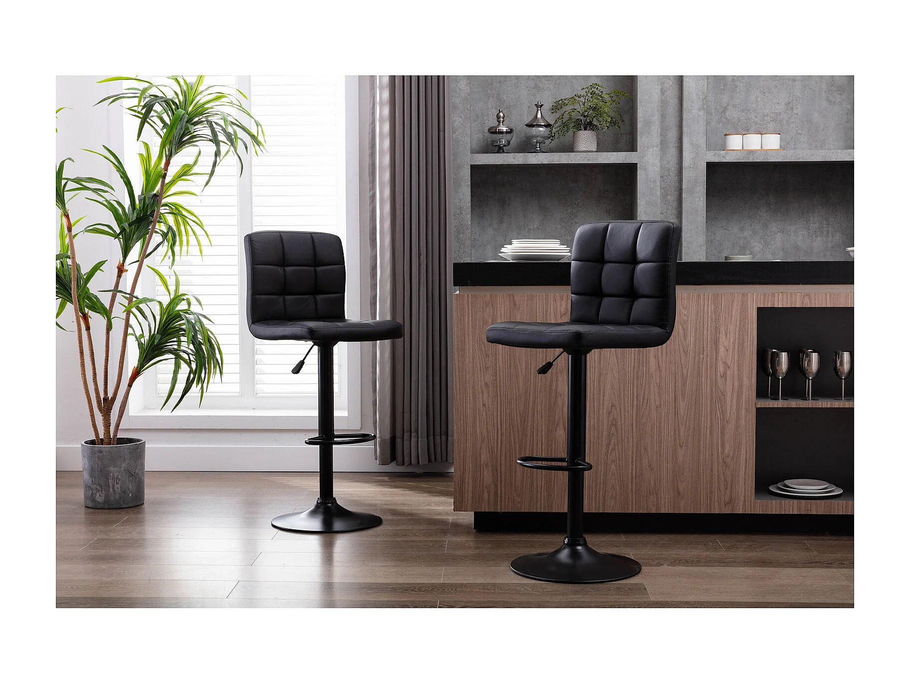 SQUARE - Tabourets de bar design réglable PU noir pieds noirs (x2)