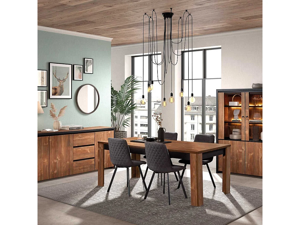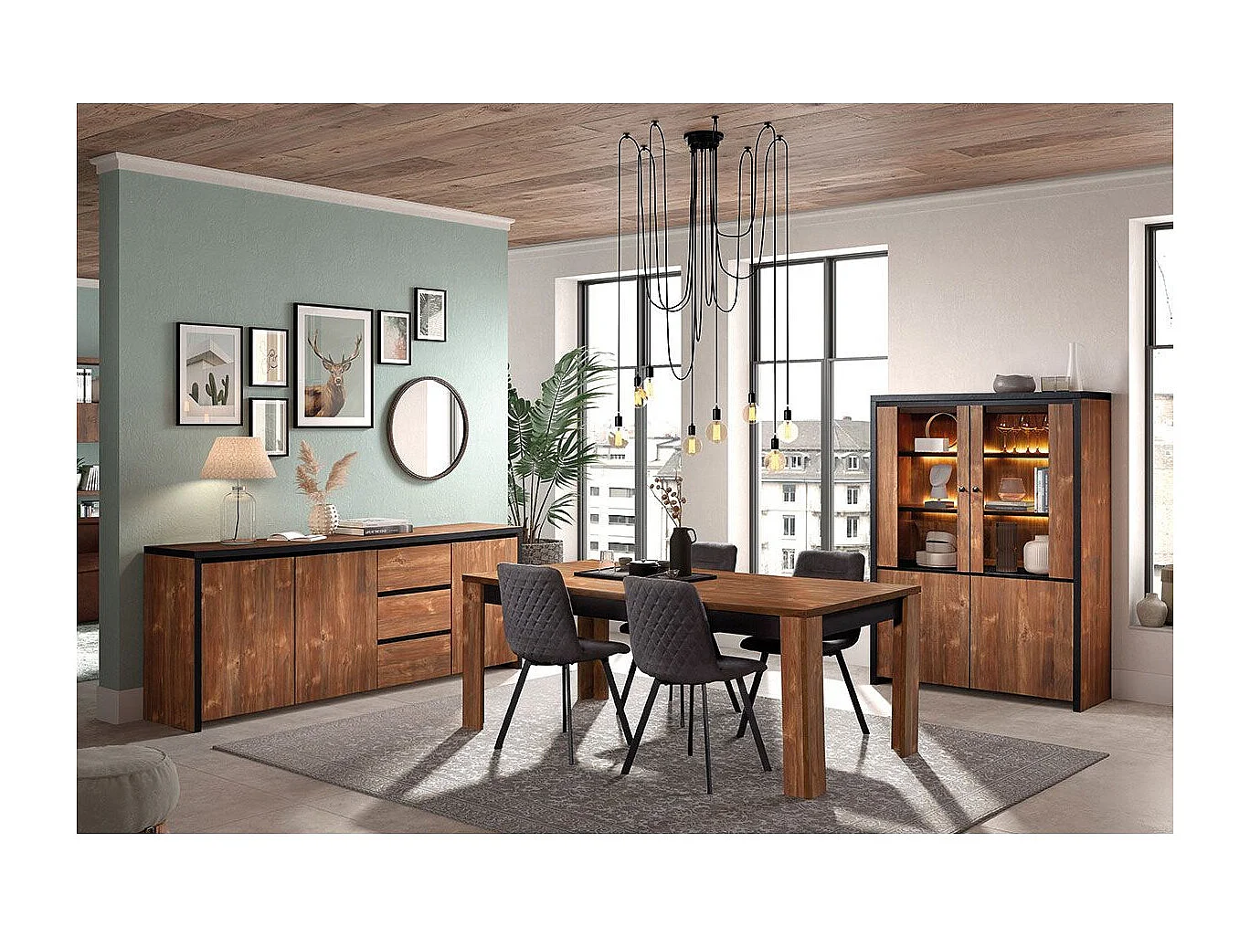 STALONE - Séjour Complet Effet Bois Manguier Foncé et Noir