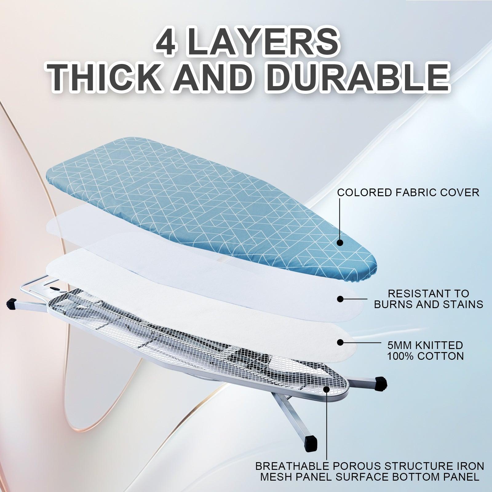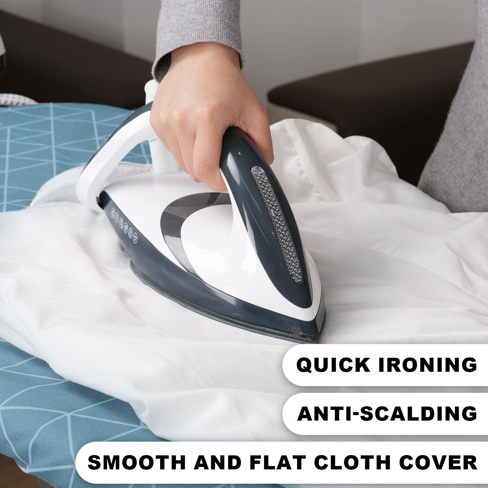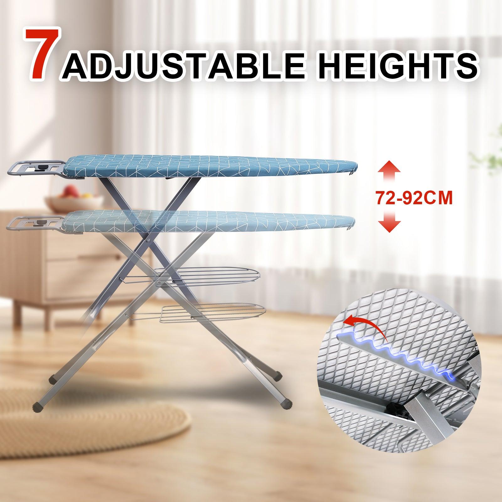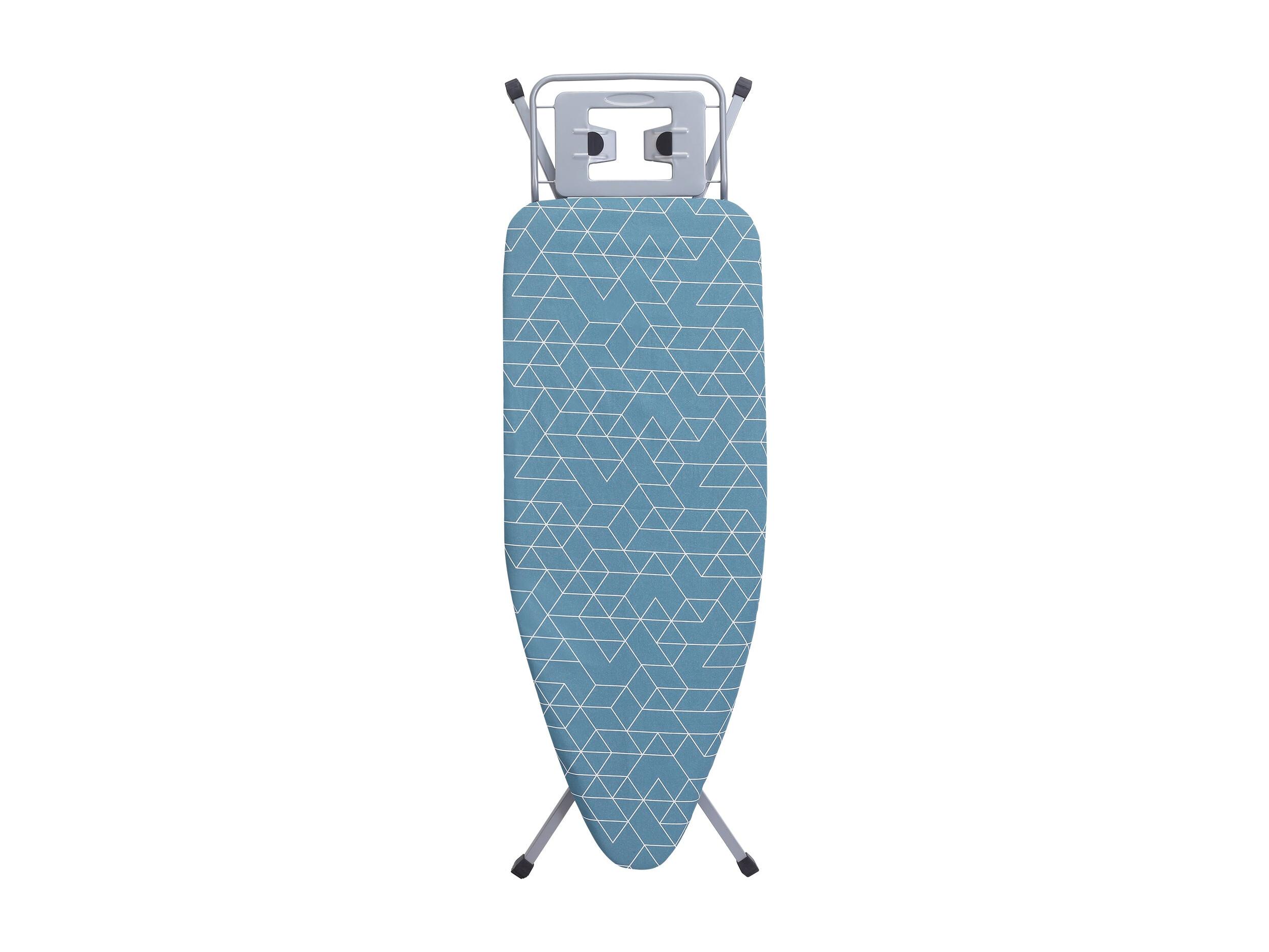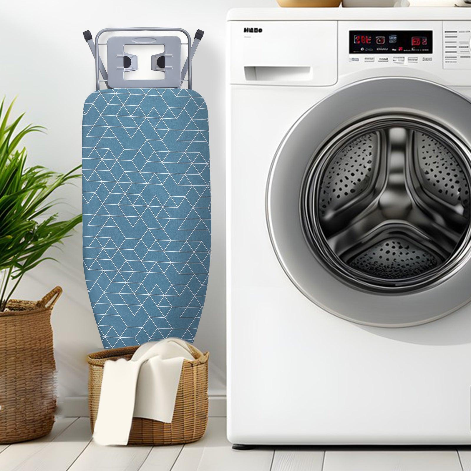 STANEW Table à Repasser 120 x 45 cm,Système Anti-Fermeture,Hauteur Réglable,avec Housse en 100% Coton,Support de Fer Intégré(Bleu géométrique)
