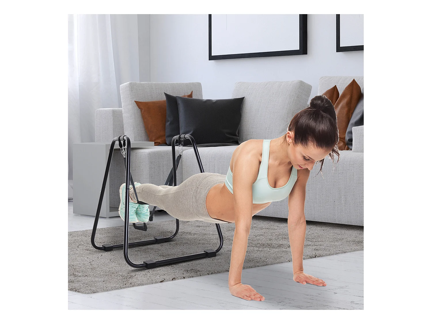 Station de dips avec entraîneur à sangle, structure en acier robuste, noir (90x81x92.5cm)