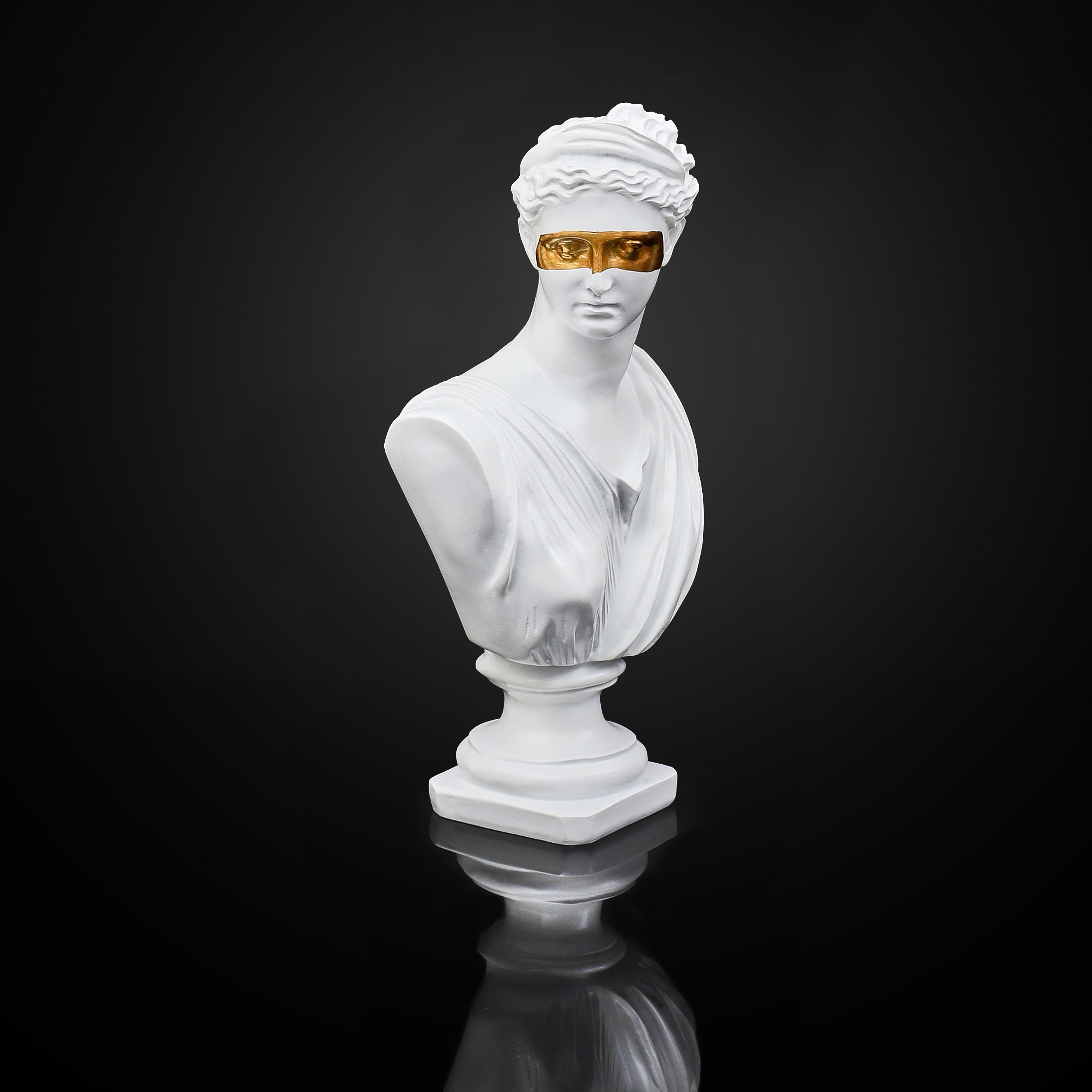 Statue Buste Masque Dore H31.5cm Blanc, Or