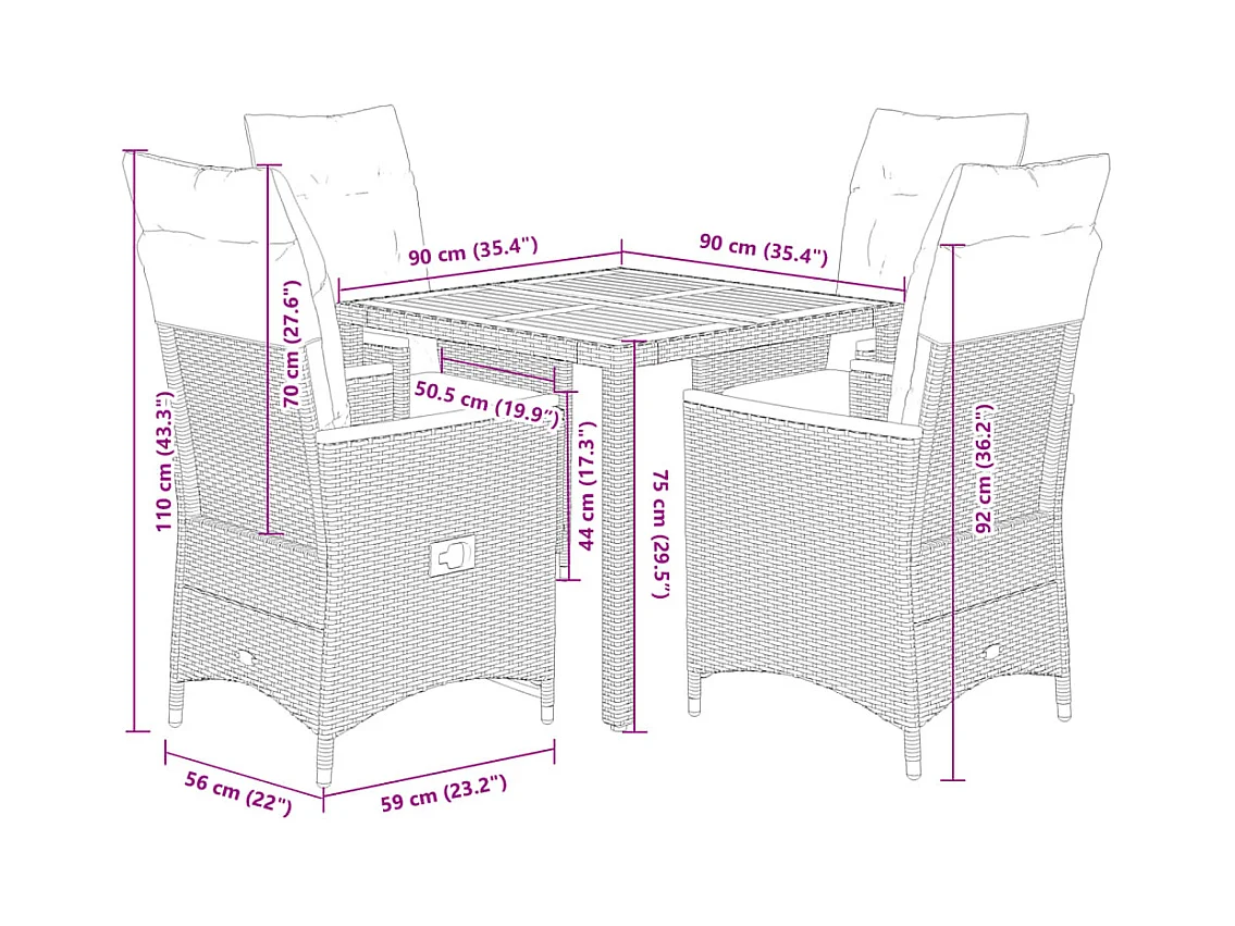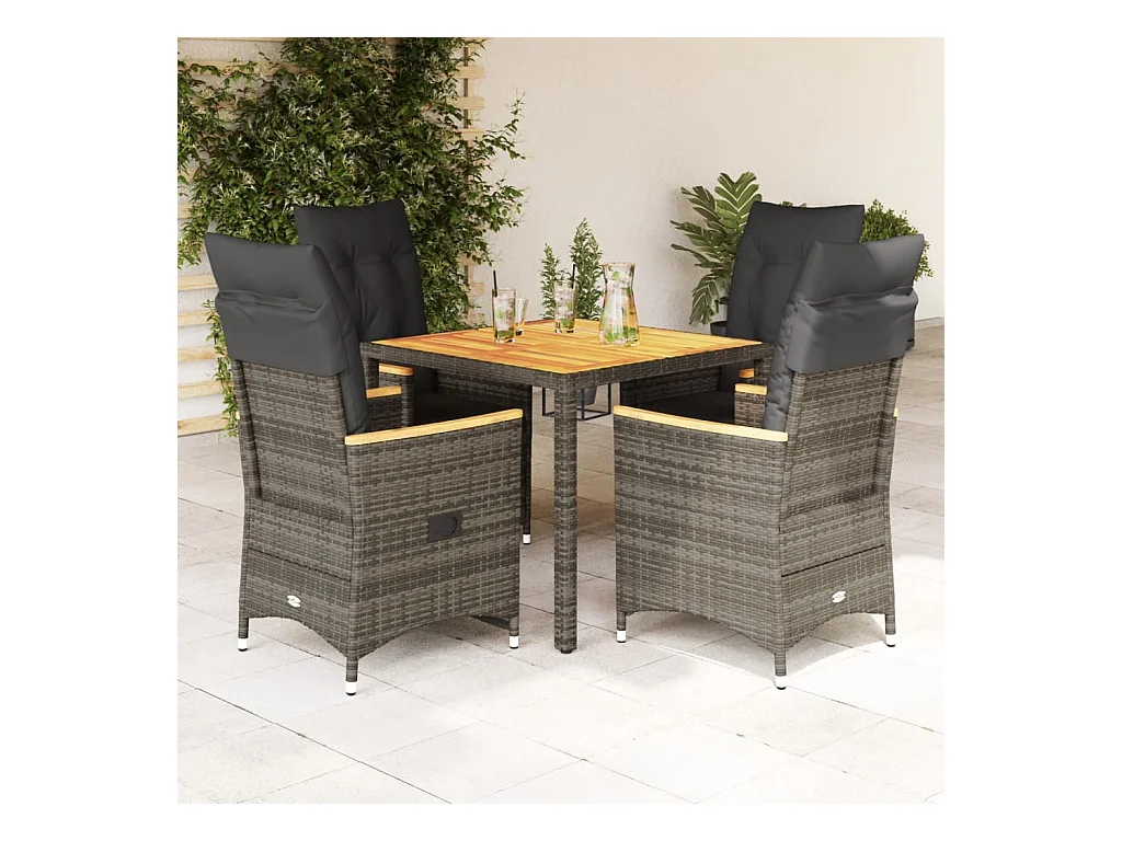 Staunton Ensemble à manger de jardin 5 pcs coussins gris résine tressée