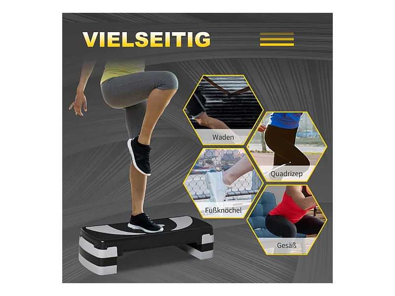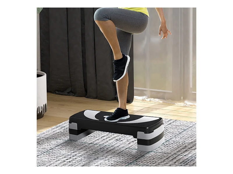 Stepper d'aérobic réglable en hauteur, antidérapant, PVC, noir (110x40x20cm)