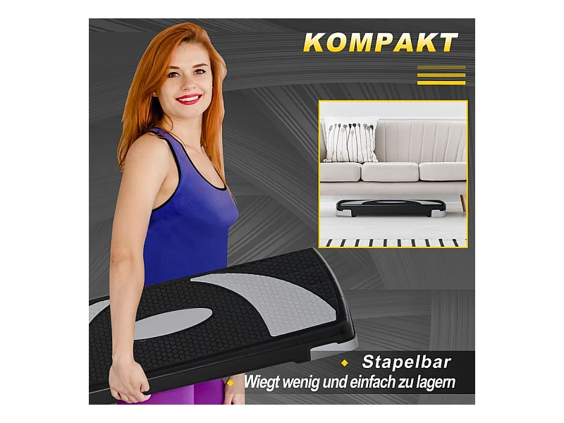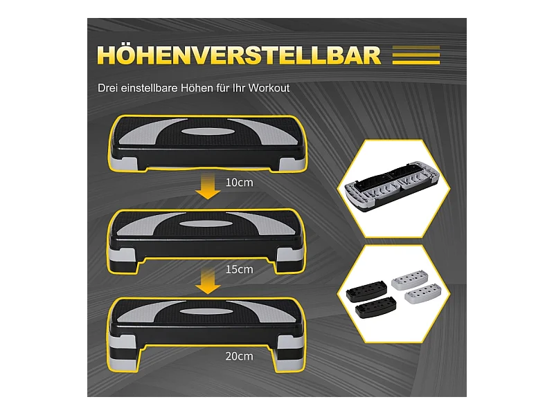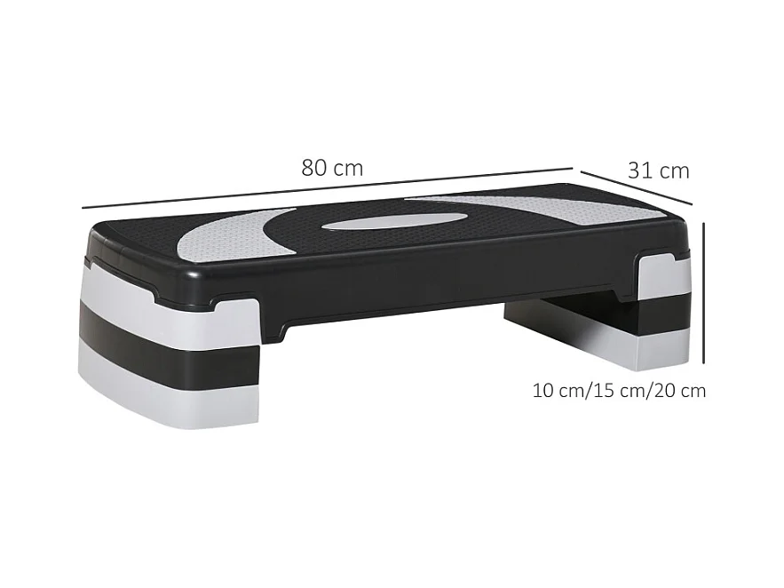 Stepper d'aérobic réglable en hauteur 10/15/20 cm, plastique robuste, noir, antidérapant (80x31x20 cm)