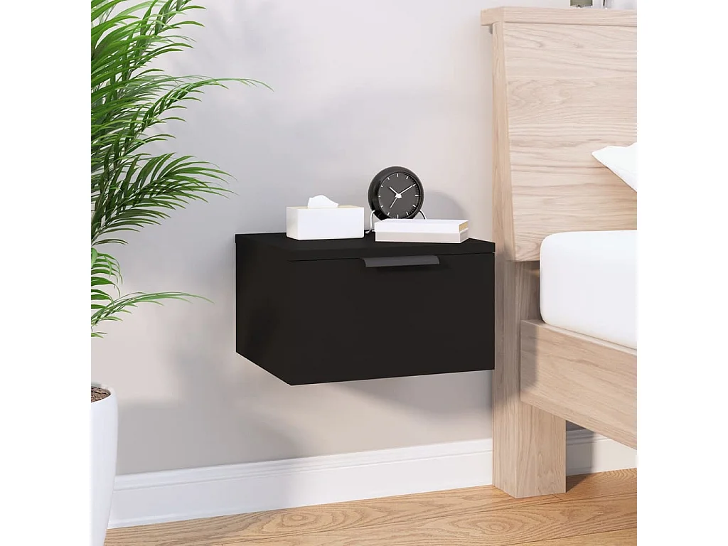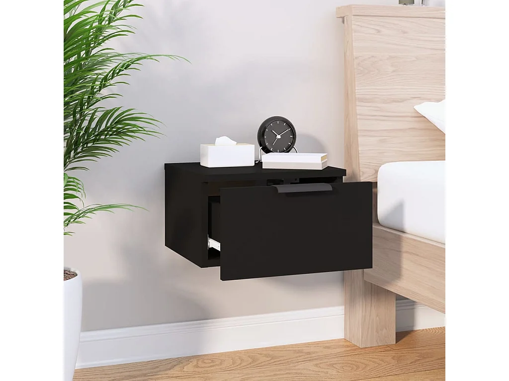 Ahmed Table de chevet murale Noir 40x29,5x22 cm