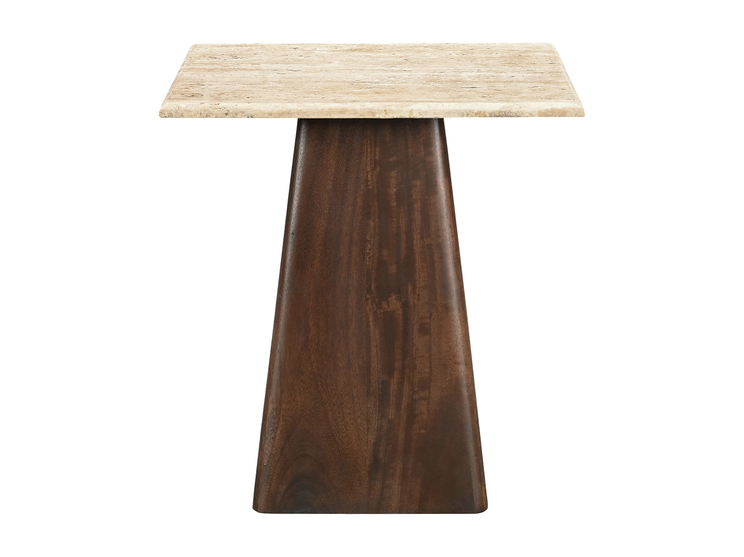 STONE-Table basse carrée 45x45 cm en Travertin et bois brun