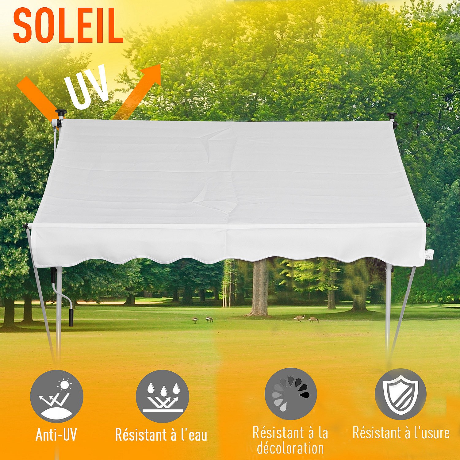 Store banne manuel rétractable 2L x 1,5l x 1,7-2,8H m inclinaison réglable installation rapide métal alu polyester blanc