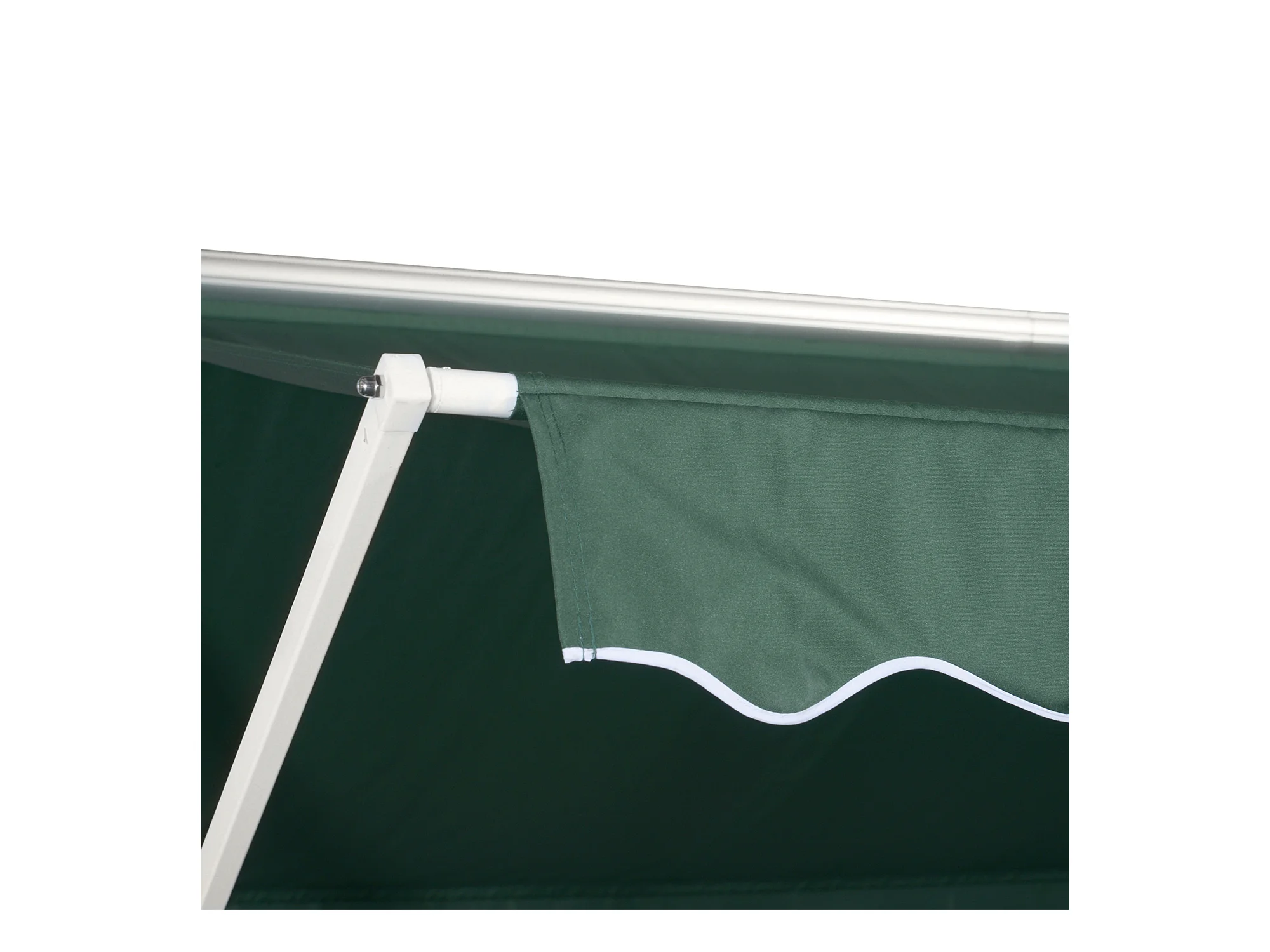 Store double pente manuel rétractable inclinaison réglable métal époxy blanc polyester imperméabilisé anti-UV vert dim. 3,95L x 2,98l x 2,55H m