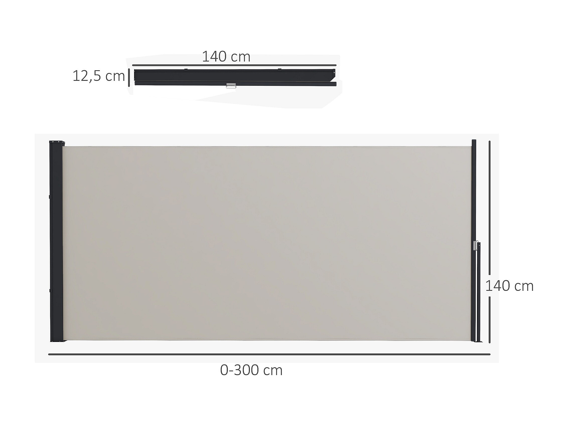 Store latéral brise-vue paravent rétractable dim. 3L x 1,40H m gris