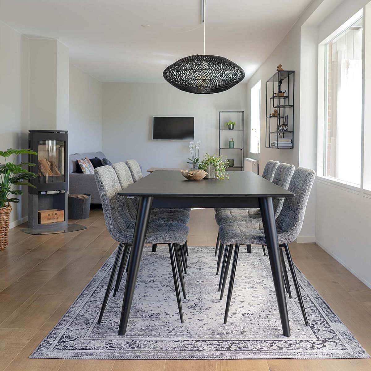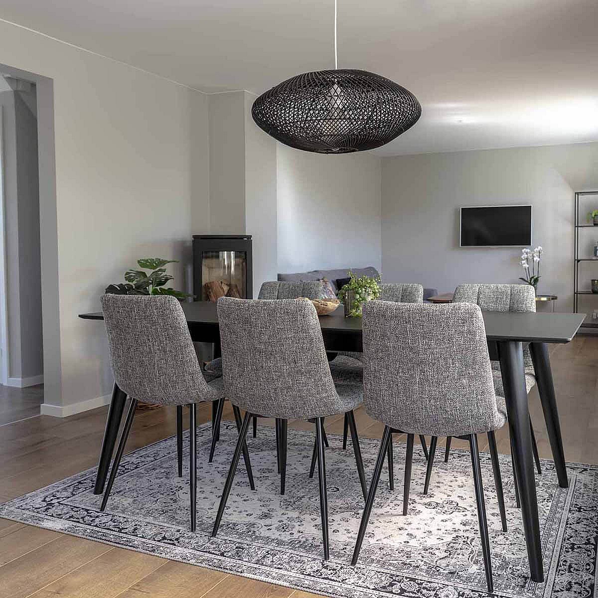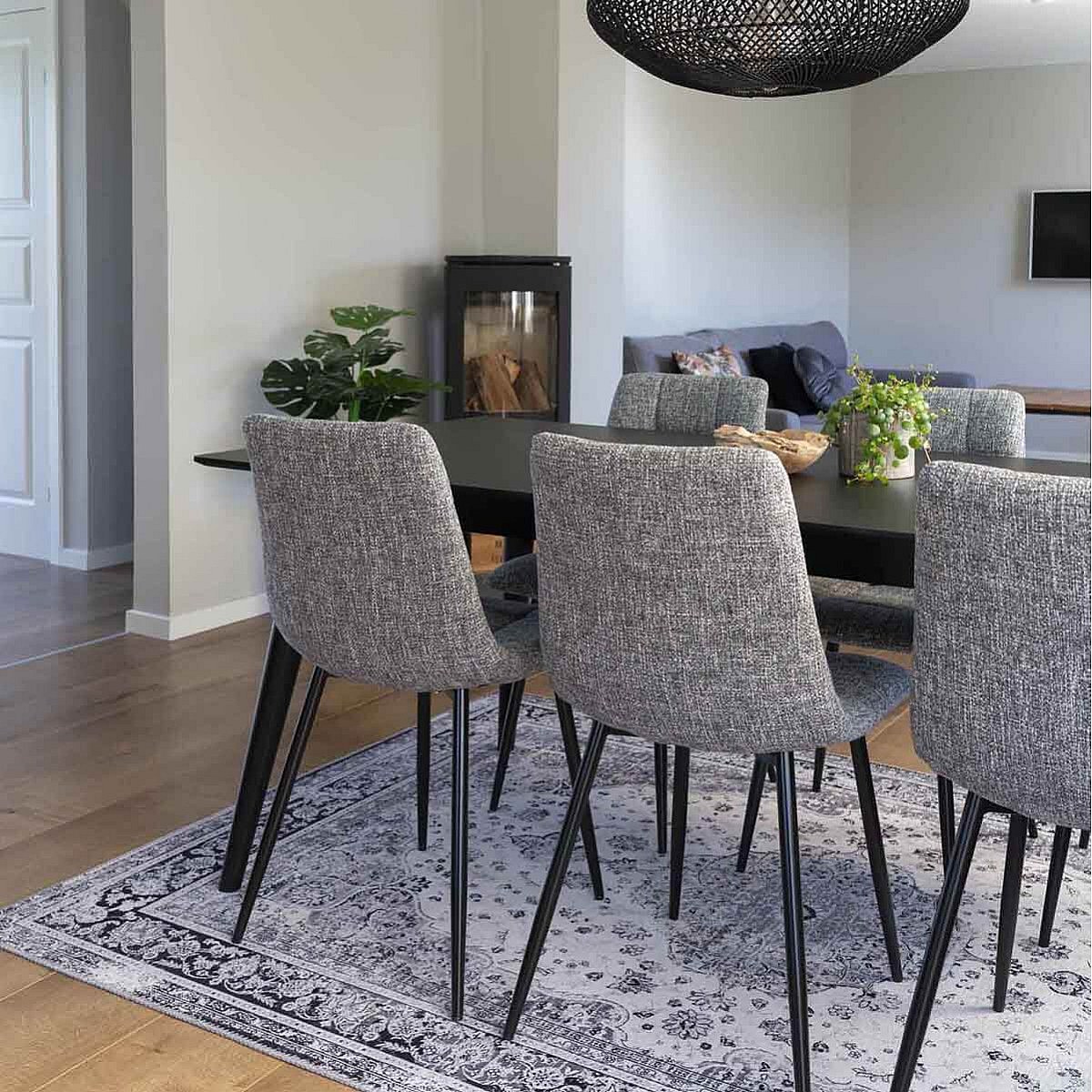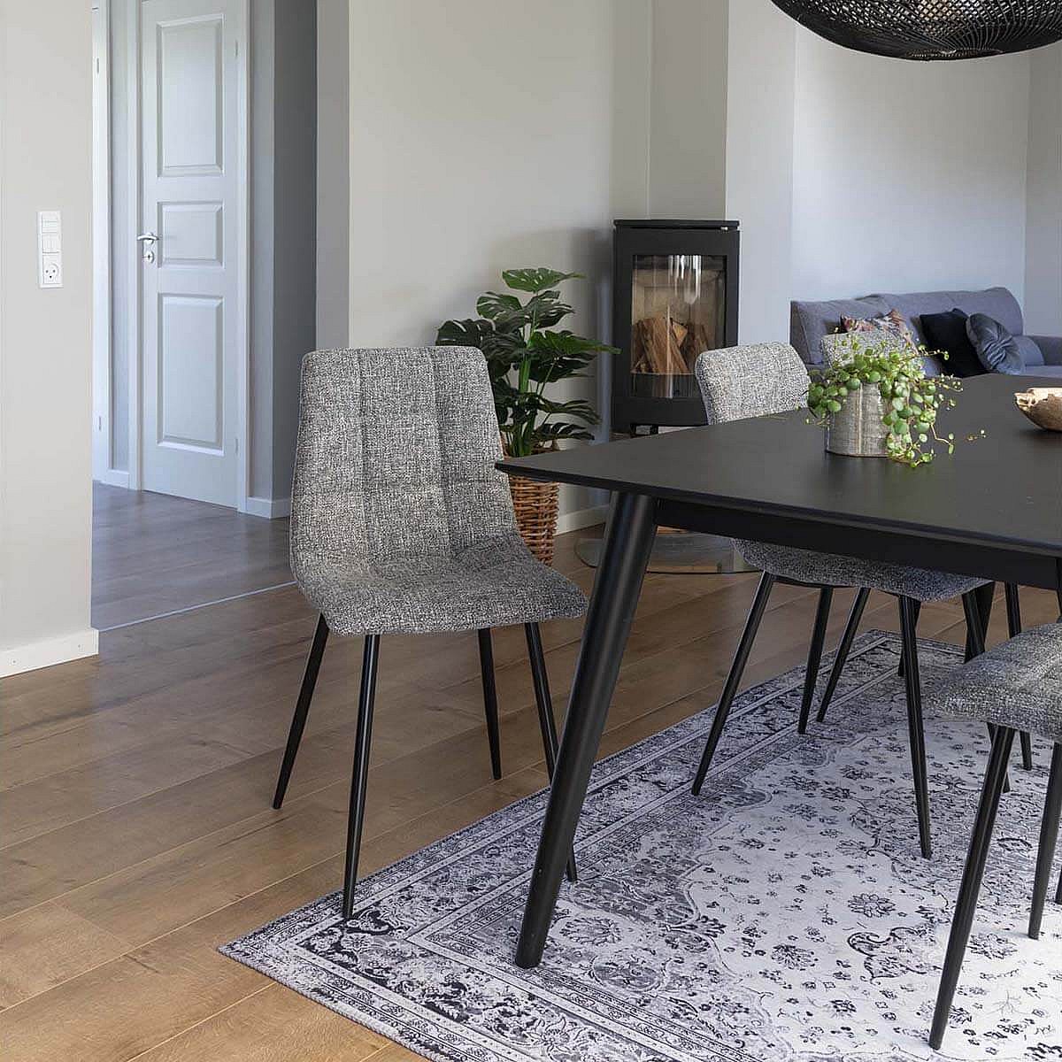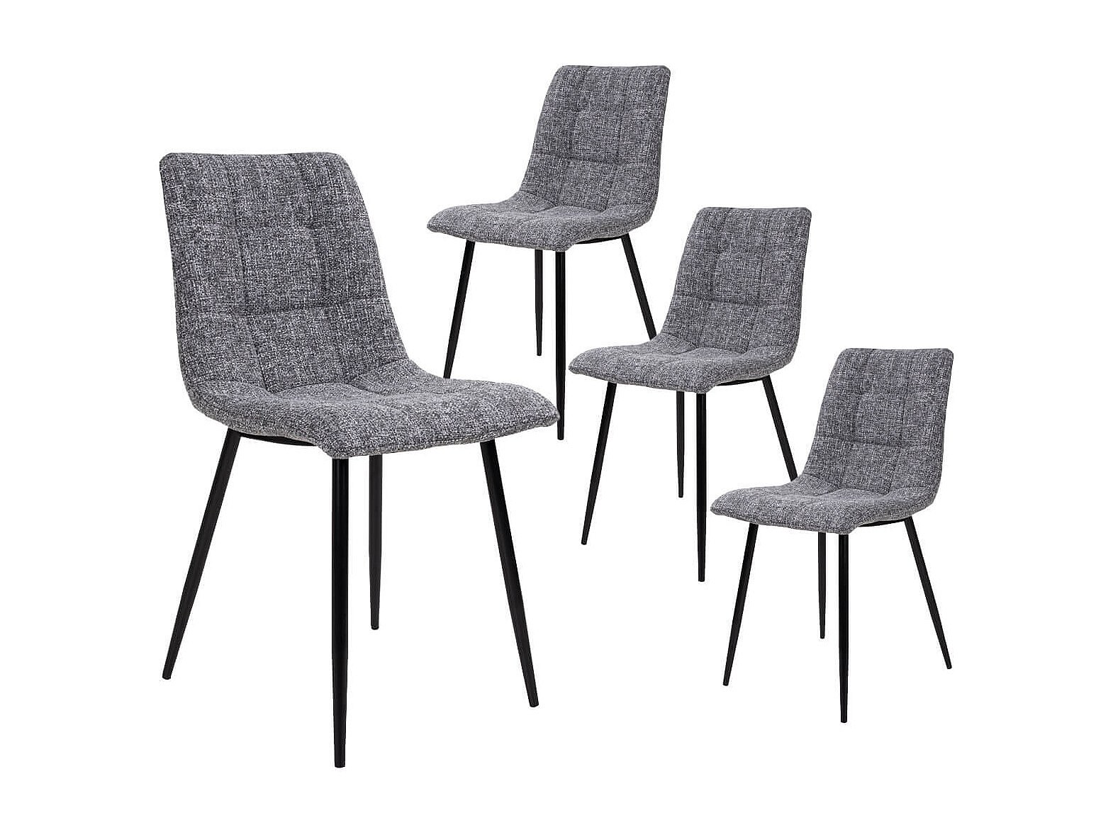 STRIB - Lot de 4 Chaises Tissu Gris Tacheté et Piétement Acier