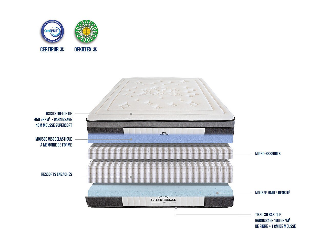 SUITE ETOILEE | Matelas SUITE IMPERIALE 180x200 cm | Ressorts ensachés & Mémoire de forme