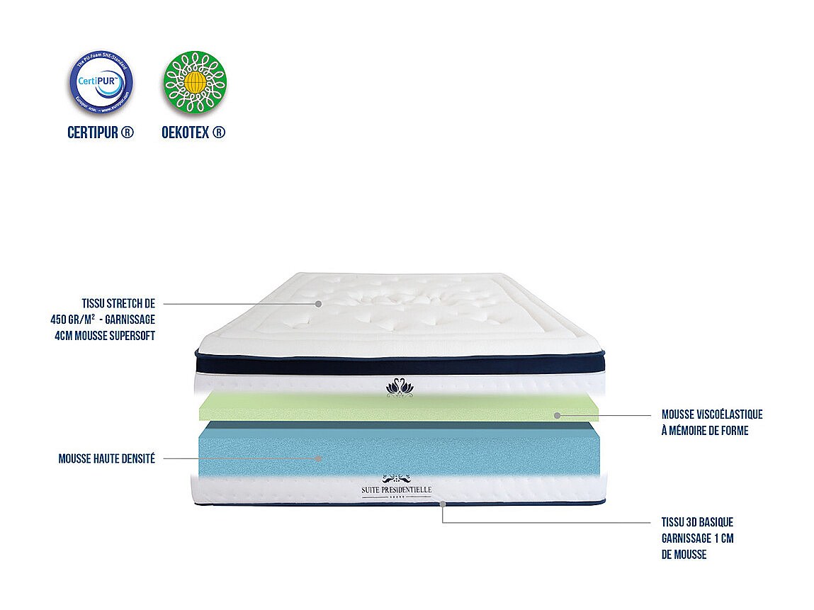 SUITE ETOILEE | Matelas SUITE PRESIDENTIELLE 160x200 cm | Mousse avec mémoire de forme