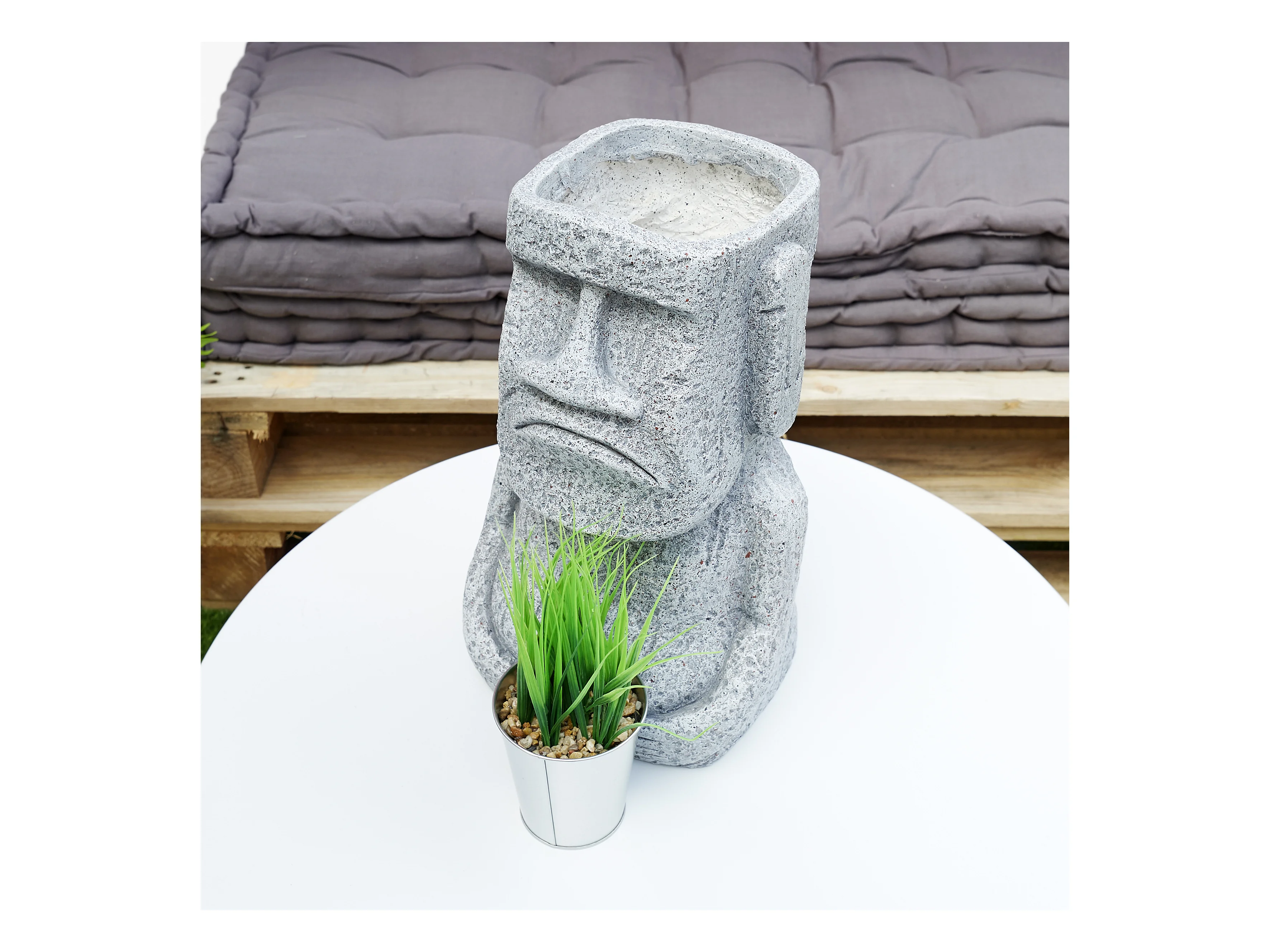 Figurine Azteque Porte Plante En Magnesia H46cm Gris