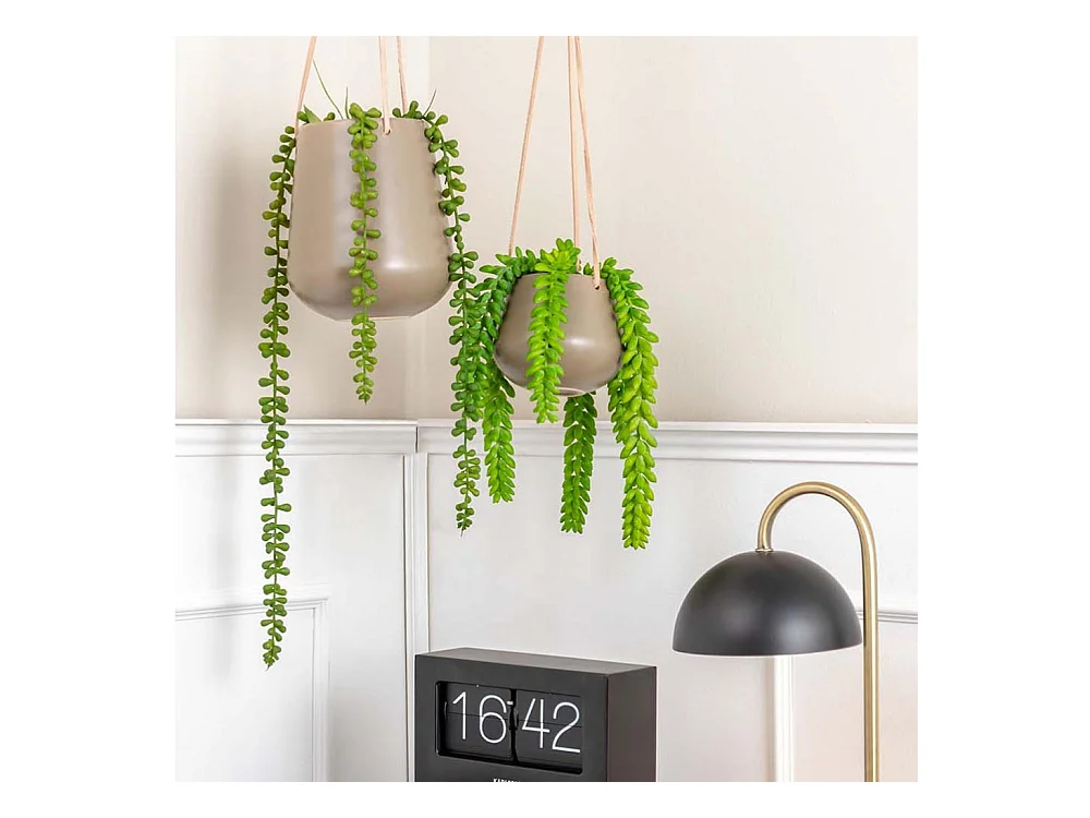 Plante verte artificielle Pot en céramique Ocre émaillée H 16 cm