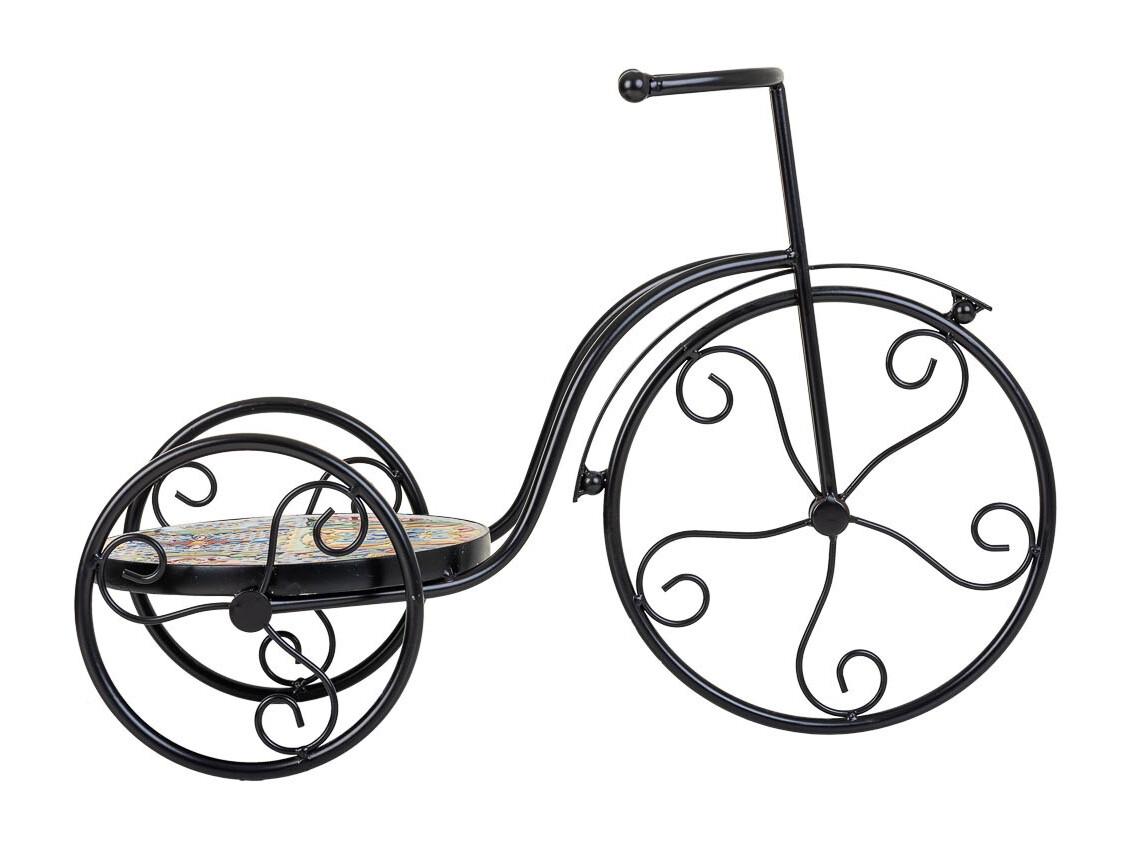 Support de pot de fleurs vélo en mosaïque et métal noir 53x23.5x36h